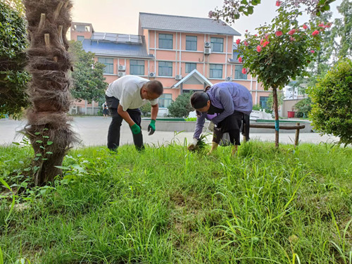 强化病虫害防治,保护苗木健康生长。夏季也是病虫害的高发期,华泰物业采用打药机与人工作业合理搭配,及时对绿地、树木等进行喷药,保障树木健康生长。针对梅雨季节到来,降水充沛,杂草生长旺盛的特点,采用人工除草与机械打草相结合的方式,对小区内、公园里等杂草茂盛使用打草机打短削平,对路牙缝隙等不适合机械打草的区域,环卫工人拔草器、铲子,铁锹等工具进行人工除草,确保做到无死角、无遗漏。华泰物业园林负责人田永和跟我们介绍说:夏季高温、高湿的天气会造成树木煤污病严重,我们每年夏季都会对灌木进行5到6次的整体修剪及病虫害防治。”