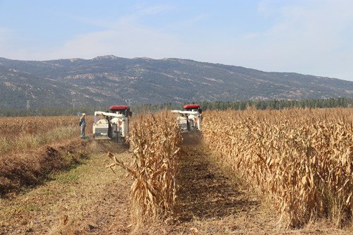 云台4000余亩玉米大豆开始收割