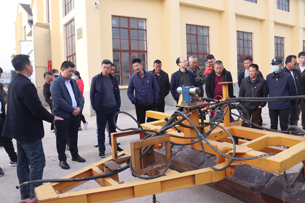 农业现代化必须首先实现农机现代化,农机化科技水平直接关系到粮食产量、质量及成本的高低。近年来,农垦农发淮海分公司发挥农机科技队伍力量强的优势,积极研发适合农垦农业生产需求的先进、高效、节本农机具,为不断提升江苏农垦农机现代化水平作出了贡献。4月11日,云台分公司副总经理骆元带领相关部门和大队负责人赴淮海分公司参观农机。