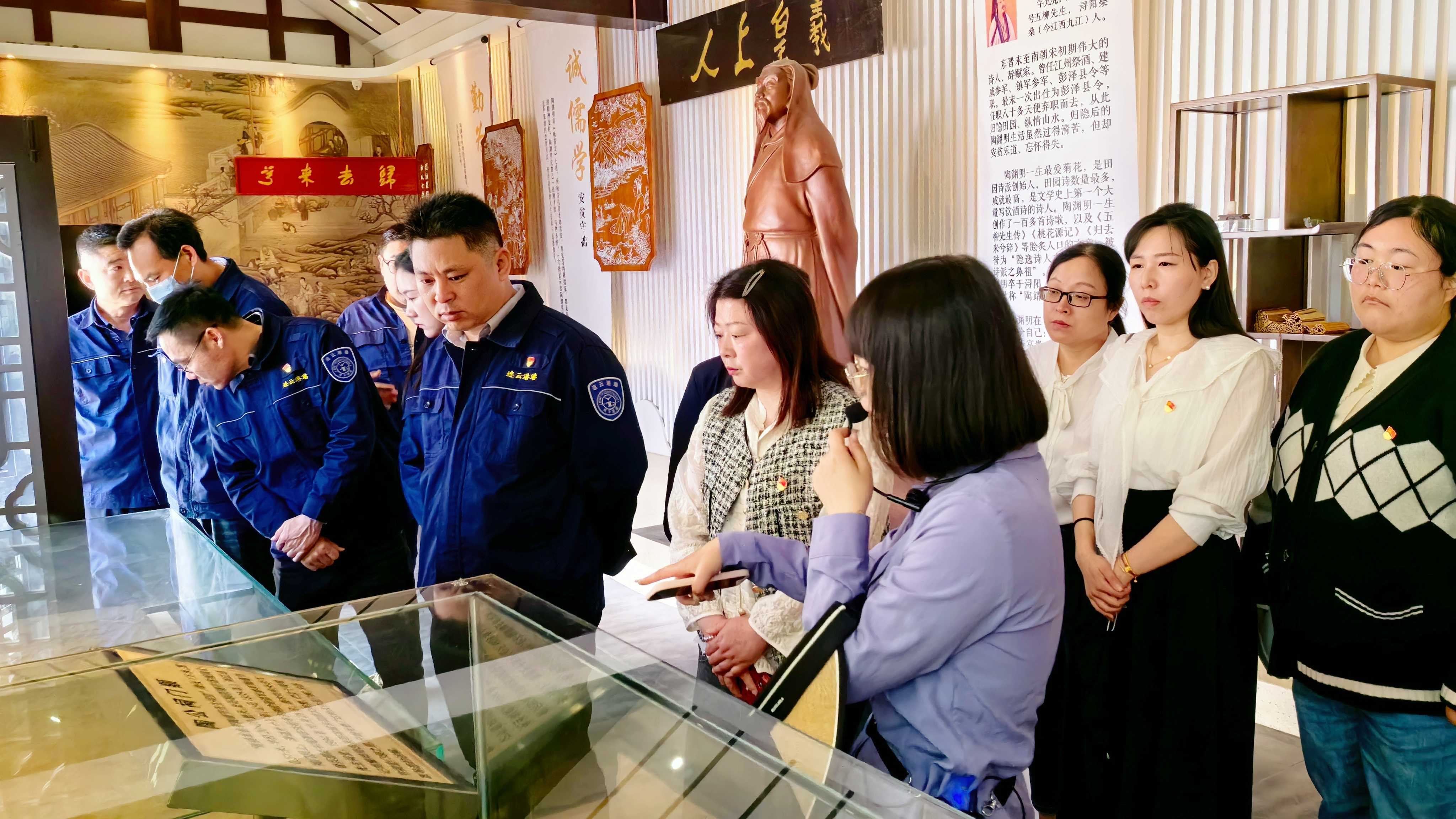 聆听着讲解员对陶渊明生平的娓娓讲述,大家在移步间感受着陶渊明十三年的游宦经历和“勤为民、诚儒学、不折腰、尚自由”的政德思想,一同走进了他的诗意人生。