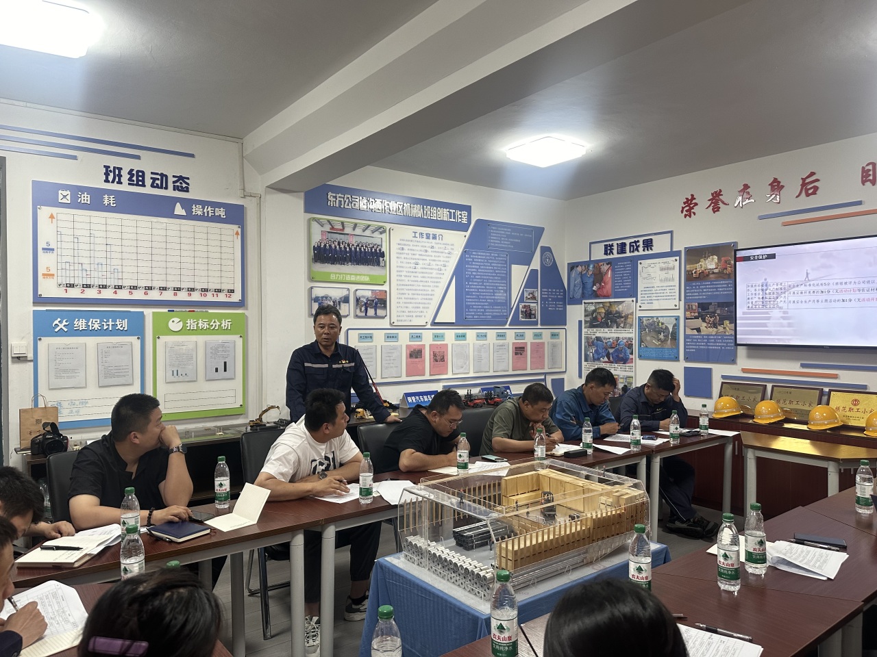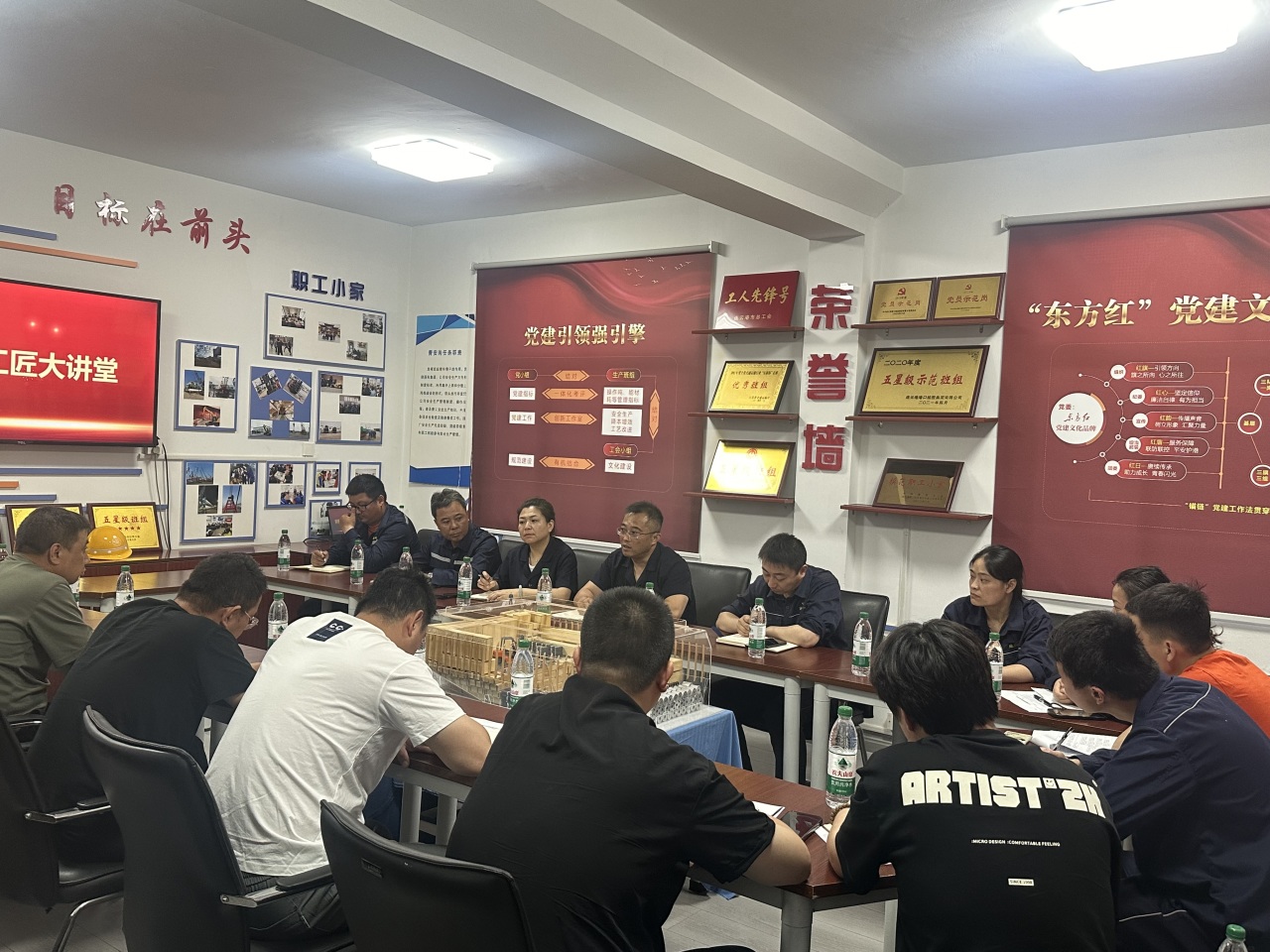 6月13日,港口控股集团东方公司“劳模工匠大讲堂”活动正式启动,在墟沟西作业区机械队铲车三班创新工作室里,来自12个基层支会的公司五星级班组长参加了本次活动。东方公司相关领导参加活动。