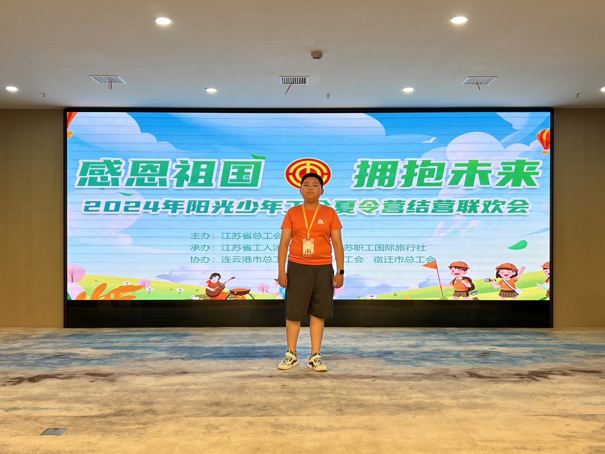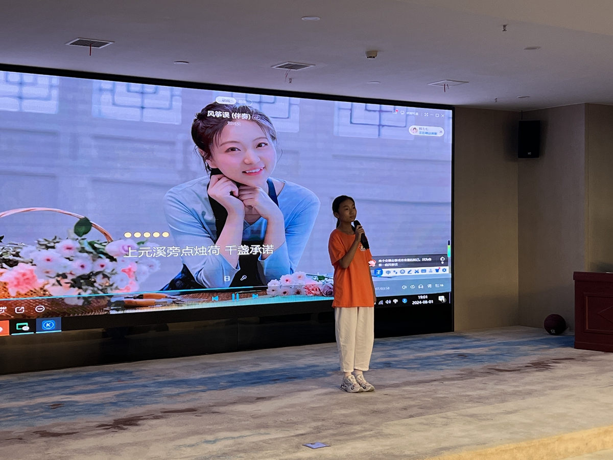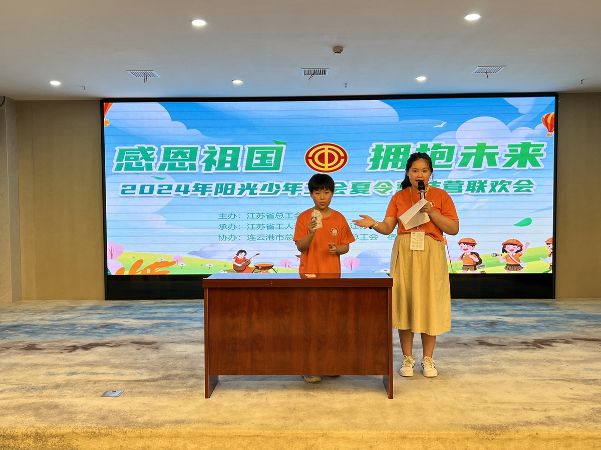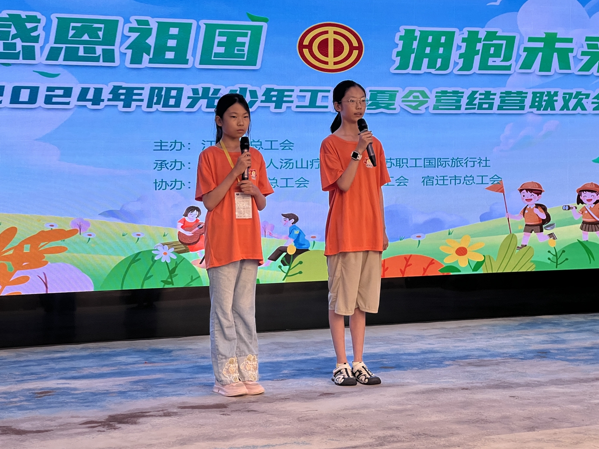 8月1日晚上,孩子们还与宿迁、镇江等地的70余名少年开展了一场热闹非凡的联欢,每一位孩子都登台展示,或歌曲串烧,或诗朗诵、或魔术表演、或自导自演小品相声,无不展现东方宝贝的自信与魅力。