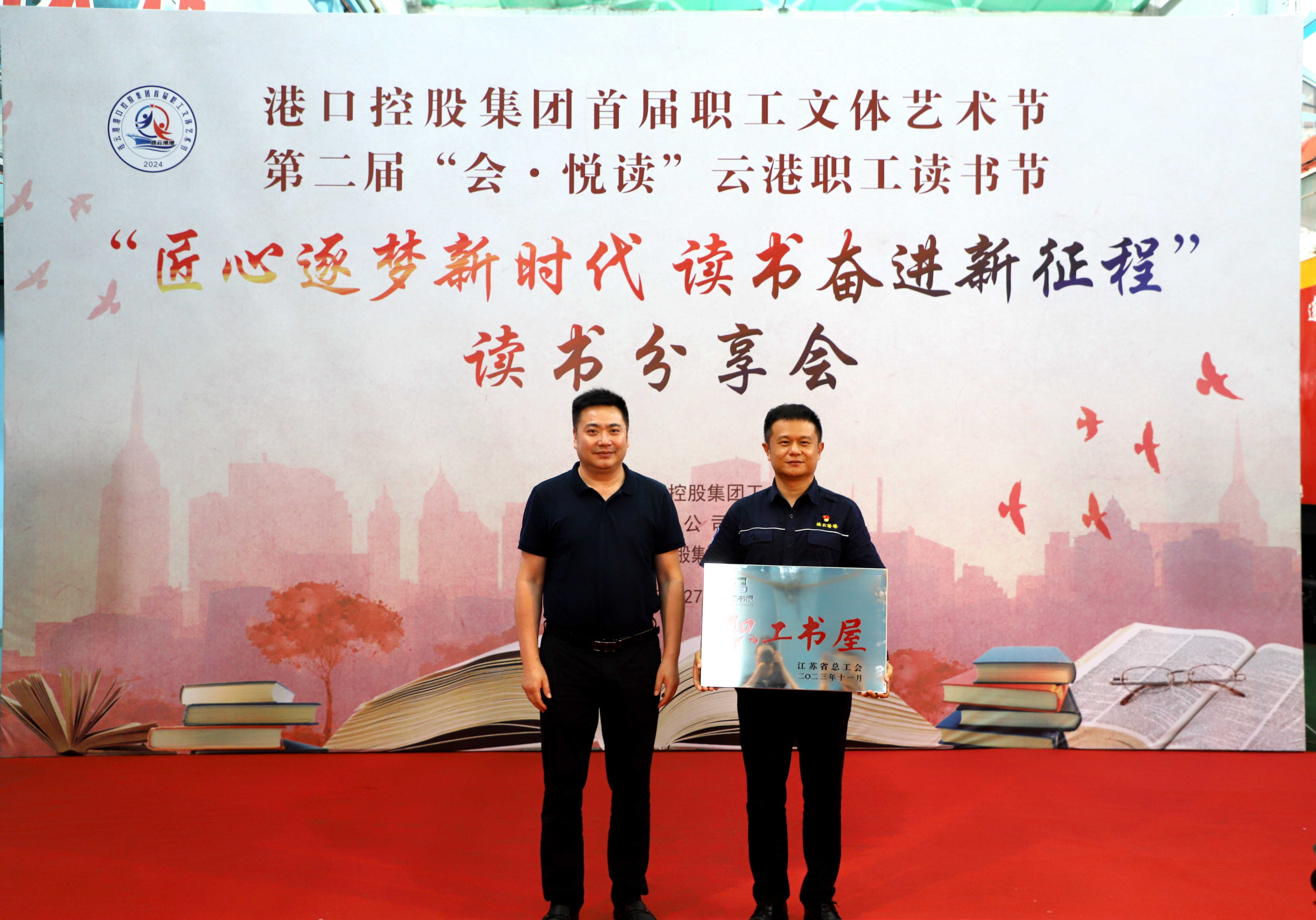 8月27日,港口控股集团“匠心逐梦新时代,读书奋进新征程”读书分享会活动圆满举办。港口控股集团党委副书记、工会主席杨立州,集团工会副主席尹克忠以及相关单位负责人出席活动,并为新海湾码头公司“江苏省职工书屋示范点”授牌以及代表单位赠书。