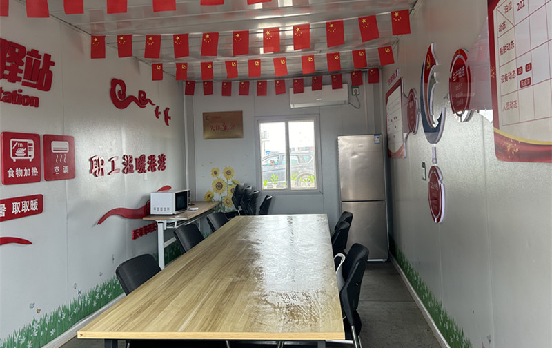 在新海湾公司6#场的“爱心驿站”,公司工会进一步拓展服务阵地功能,升级打造“爱心驿站”和“先锋翼站”综合体,增加了生产看板、党建展板、职工健康保健箱等,创新开展“三组联建”、法律知识普及宣传等一系列特色活动,围绕中心、服务大局,不断提升服务职工工作质量和水平。