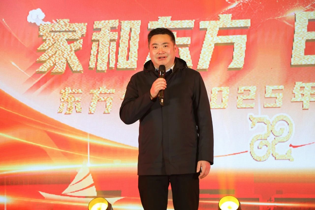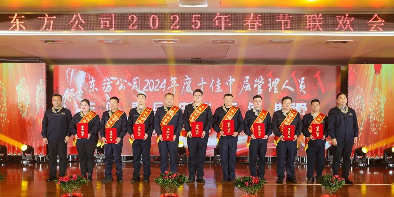 东方公司领导致新春贺词,他首先向各条战线上辛勤付出的干部职工及家属致以新春的祝福和由衷的敬意!并分别从“感恩”“感动”“感谢”三个方面,讲述了过去一年在集团的领导下,东方人在挑战中寻求机遇,在困境中砥砺前行,在变化中谋求发展,用智慧和汗水书写出东方最美答卷,风雨同舟、砥砺前行。2025年,东方人要“不忘初心”“坚定信心”“展现决心”,继续发扬“东方精神”,保持战略主动,锻造发展优势,在“时”与“势”中把握内外环境,在“责”与“效”中抓牢工作落实,在“稳”与“进”中统筹高质发展,开拓新局面,奋进新目标,展现新气象,实现新跨越,共同迎接更加美好的明天!