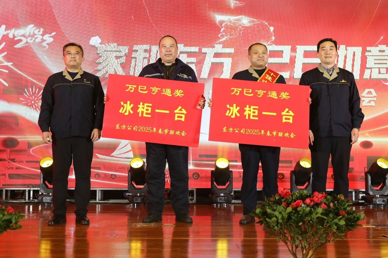 他在讲话中对东方公司在党建引领、生产经营、安全环保、后勤保障和服务职工等方面所做的工作给予肯定和感谢,希望全体干部职工继续接续奋斗、共克时艰、上下团结、齐心协力,开创更好的发展局面,创造更加令人骄傲的业绩,并祝福所有职工及其家人,新春愉快、生活美满、平安顺遂!节日里不变的传统铸就了东方“春晚”不变的情怀,描绘出东方一年又一年的发展变化。伴随着公司全年回顾视频,大家共同重温了2024年的难忘瞬间,也收获了新的一年的美好祝福。