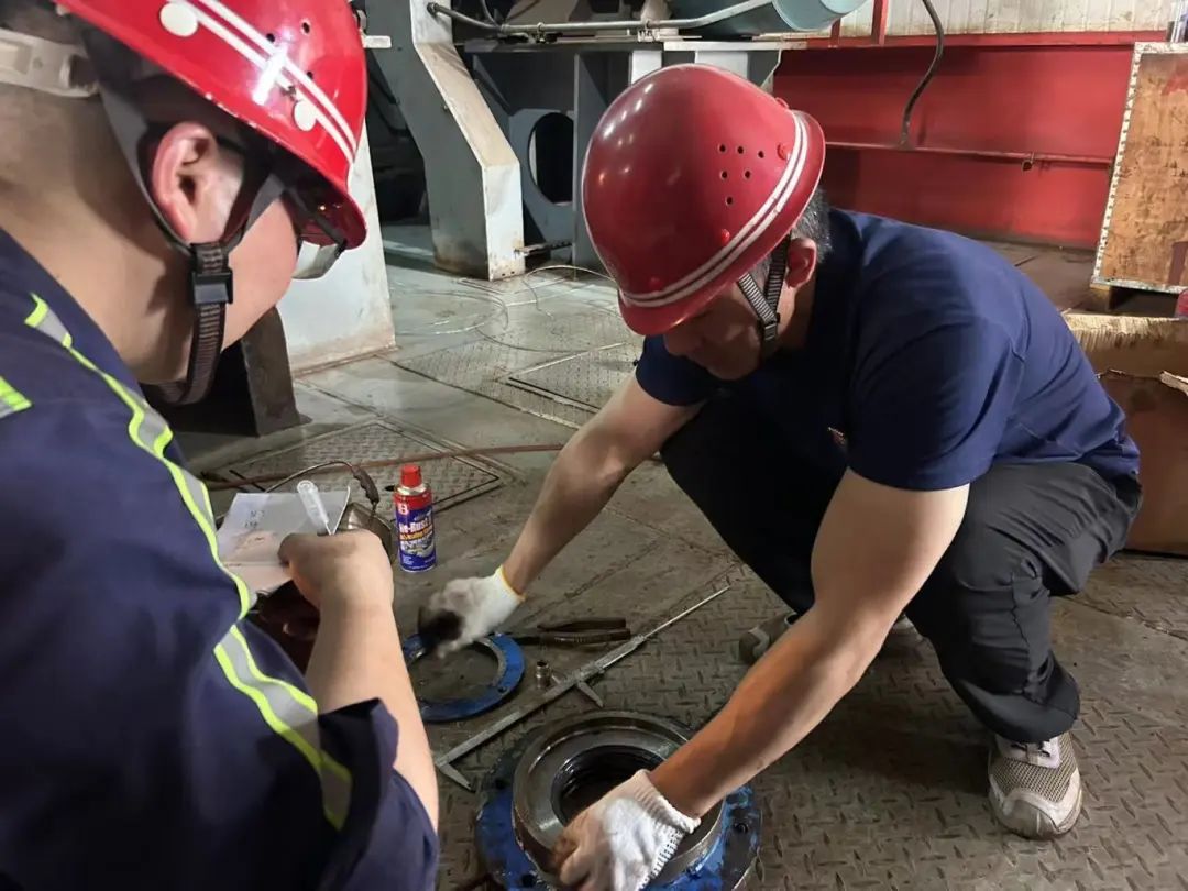 7月,面对2号卸船机开闭减速箱轴承故障,郑昌林亲自挂帅,带领技术管理团队一头扎进设备研究中,查阅大量的技术资料,与同行进行交流学习。白天,他们在码头现场对设备进行细致的观察和检测,不放过任何一个细微的故障点;夜晚,他们在办公室里挑灯夜战,分析数据、研究方案。他们如同不断探索的工匠,在设备的每一个零部件间探寻着奥秘。经过无数次的尝试和失败,终于摸索出了一套适配的维修工艺和技术方法,并在实践运用中成功解决设备故障,实现了从依赖“外援”到自主维修的华丽转身。