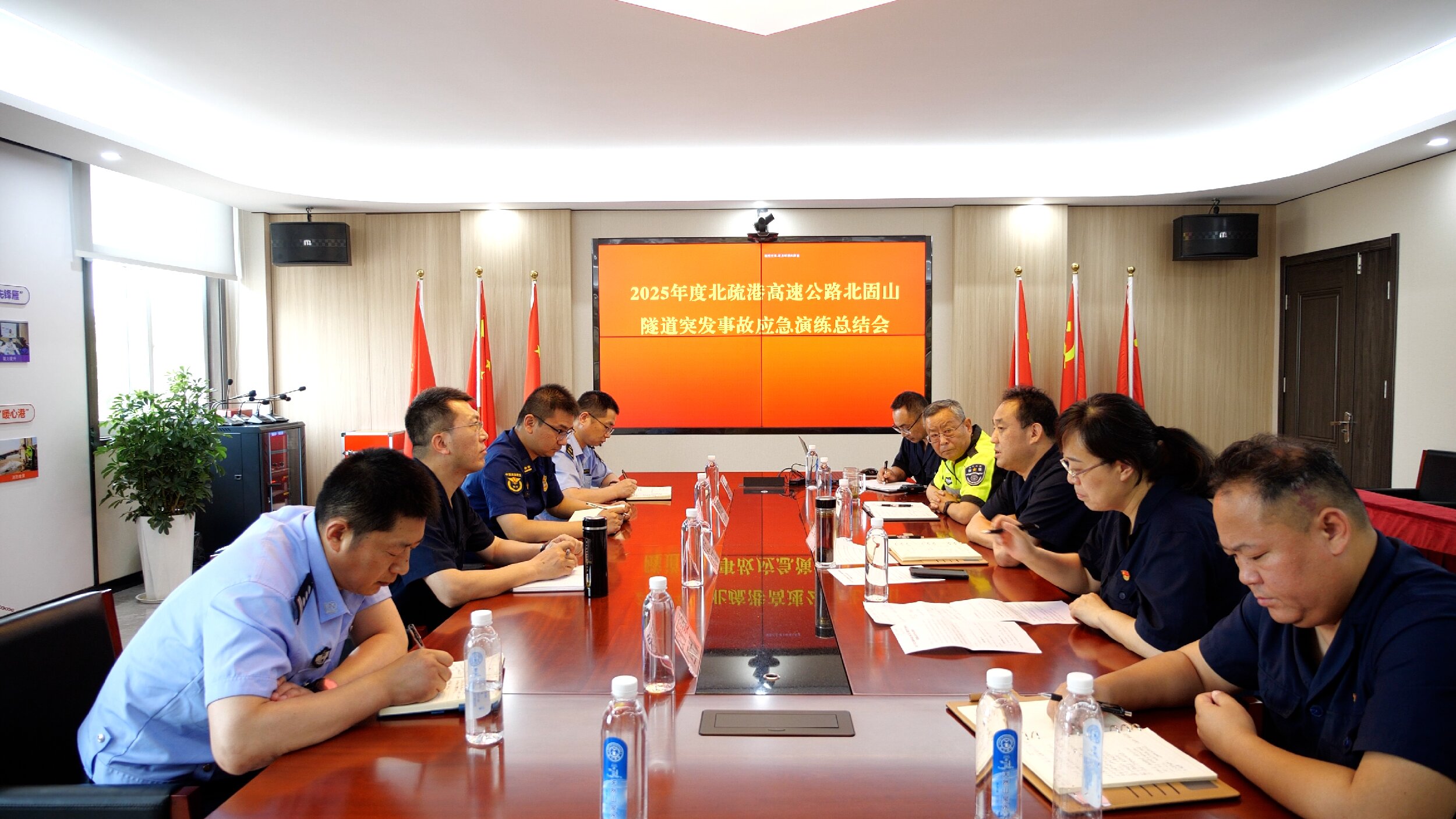 总结会上,高速交警四大队、连徐交通执法一大队、连云区消防救援大队等单位围绕信息预警、人员防护、事故升级处置、交通疏导、信息沟通、装备操作等环节点评,既肯定联动效率,也指出细节短板。集团安环部总经理李晓光强调,要以问题导向优化应急预案,提升跨部门、跨单位协同作战能力。公管公司表示将梳理问题、强化整改,确保应急处置方案更加科学、高效。