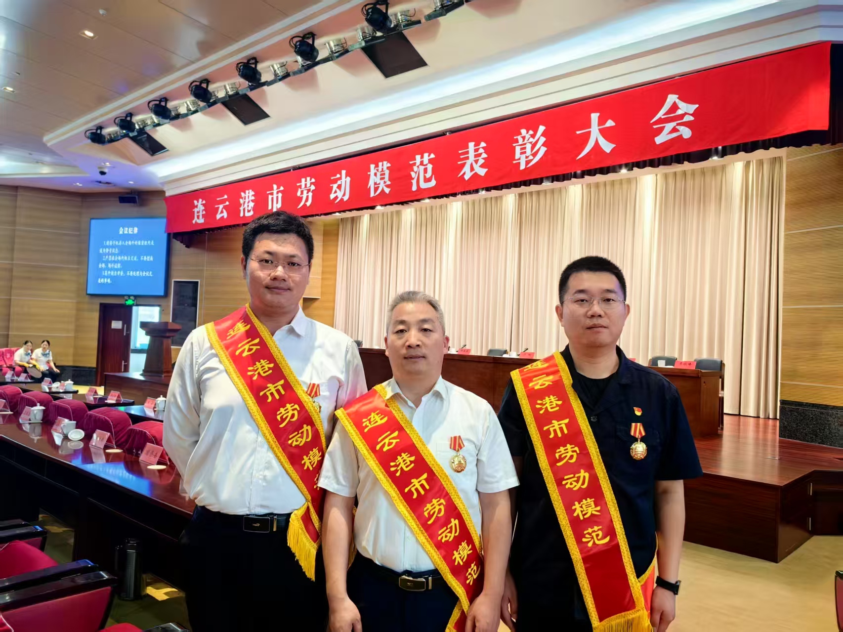 2025年6月27日上午,连云港市劳动模范表彰大会在市政府举行。集团三名职工任义杨、邹学海、万子铭获评连云港市劳动模范。