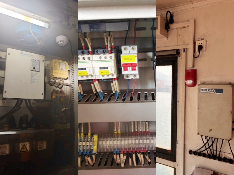 大机电气消防系统升级:为大型机械电气柜加装烟感探测器,一旦探测到烟雾,驾驶室警报器会立刻鸣响,报警信号还会同步传入 PLC 及物联网系统,能第一时间提醒相关人员排查设备状况,为设备消防安全加上了一道坚实防线。