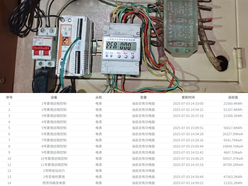 雾炮远程控制与能耗采集改造: 采用物联网控制模式后,操作人员登录后台网站,就能在组态页面对指定雾炮进行远程操控,还能实时查看设备状态监测数据及电表能耗信息。这一改造让雾炮操作更便捷,也便于对能耗进行有效管理。