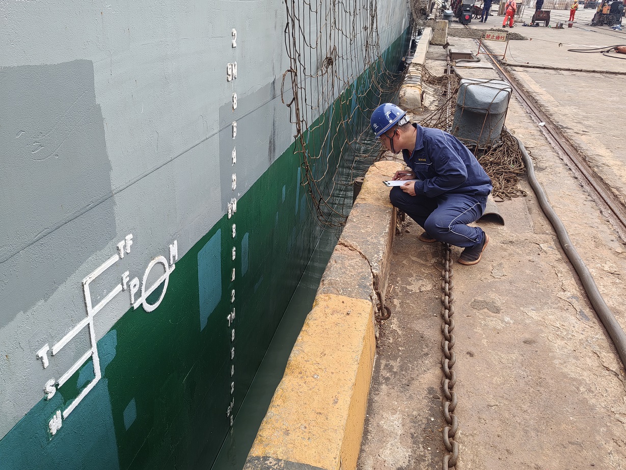 近日,港口控股集团东方公司马腰作业区12泊位旁,一场无声的较量正在紧张进行——一名选手正凝神屏息,细致观测巨轮船舷上那一道道清晰的水尺刻度。他时而俯身细察,时而退远凝望,目光如炬,动作精准,仿佛一位“度量衡”专家,正在解读船舶稳性的密码。这里,是东方公司第二届“奋进东方”技能争霸赛生产装卸指导员比赛的现场。