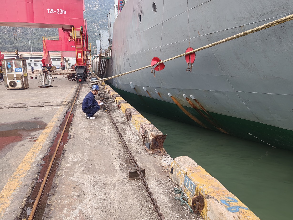 比赛现场,选手们展现出高度的敬业与专业素养。在“船舶水尺观测”环节,他们凝神观察,专注的目光在海平面与船舶吃水刻度尺间反复移动。他们或屈身细看,或远眺比对,精确到厘米记录船舶前、中、后水尺数据,再结合船舶结构特点判断是否存在中拱或中垂风险,每一个动作都透着严谨与专注。随后进行的“抢潮水作业规划”环节,更是一场脑力较量。选手们在答题板上迅速计算,将潮汐的涨落、货物的重量、船舶的特性融为一体,精准推算安全作业的边界;而在“看视频找违章”中,他们目光敏锐,短短几分钟内捕捉细微违规,不放过任何一处潜在风险,筑牢港口安全生产最坚实的防线。