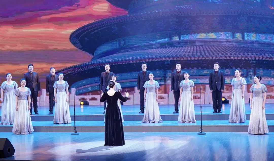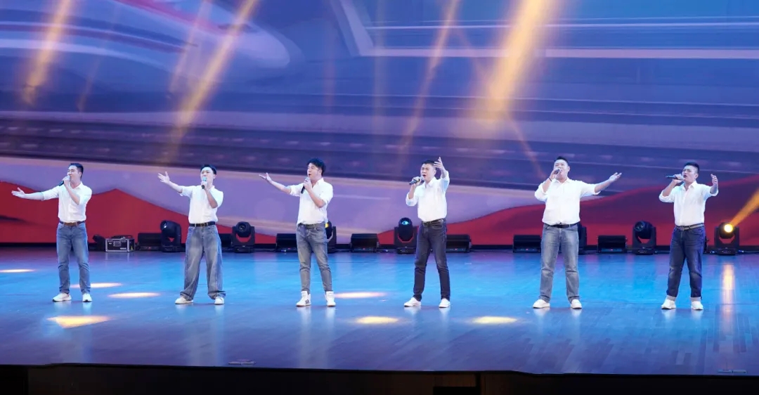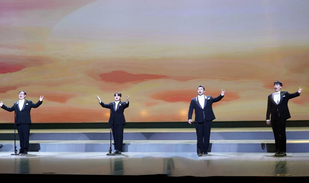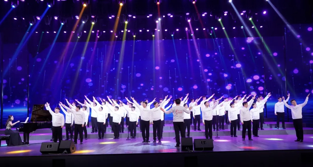 泰雄物流集团以一曲《一起手拉手》惊艳开场,瞬间点燃了全场氛围。韩方演出人员身着简约剪裁的深灰西装,以澎湃的声浪与饱满的情感,将“和平合作、开放包容、互学互鉴、互利共赢”的丝路精神化作跃动的音符,编织出文明交融的壮丽图景,让千年丝路的光辉在此刻熠熠生辉。
