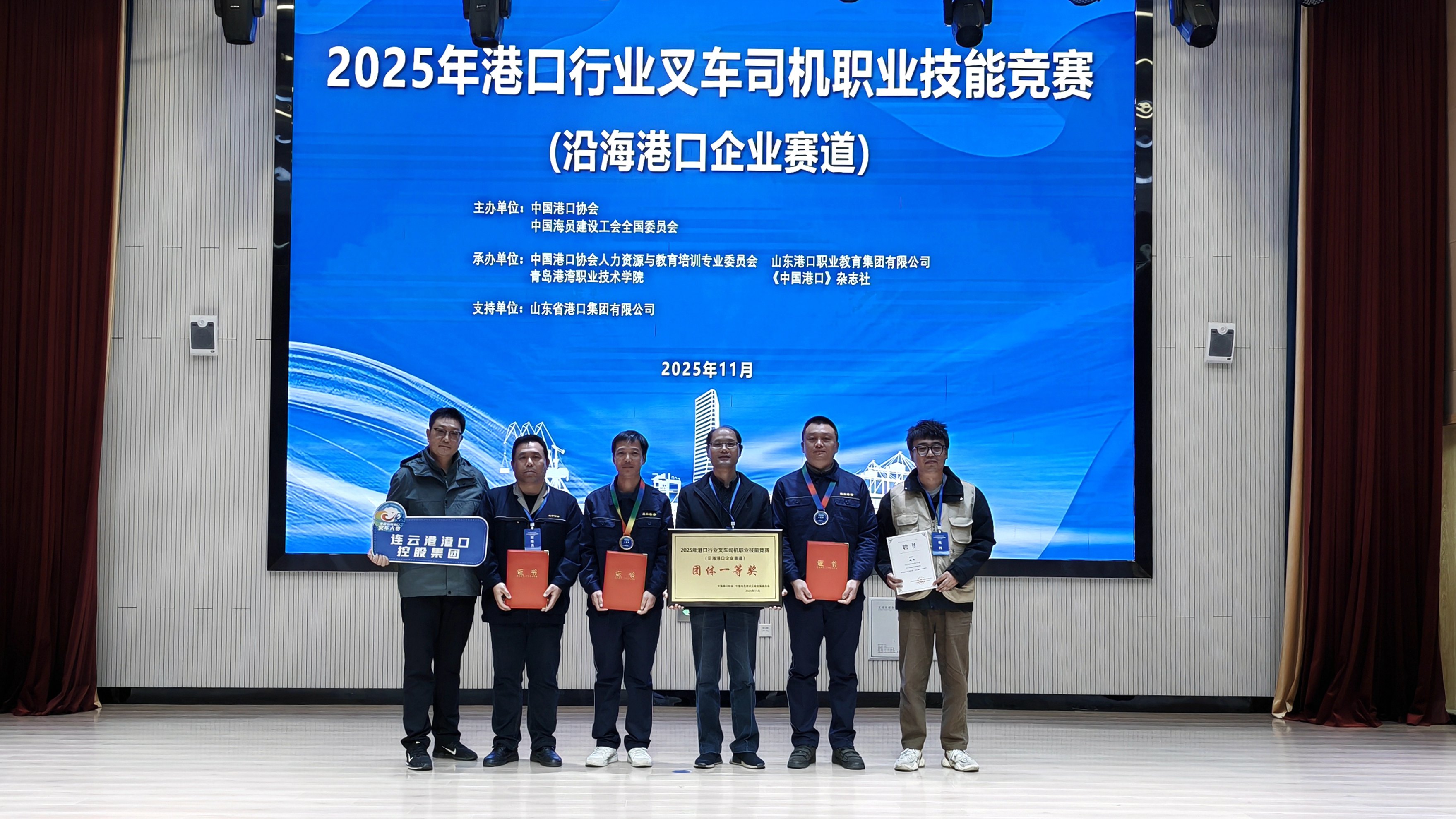 11月12日,由中国港口协会、中国海员建设工会全国委员会联合主办的2025年全国港口行业叉车司机职业技能竞赛在山东青岛圆满收官。港口控股集团东方公司职工孙虎和张洪瑞经预赛选拔代表港口控股集团参赛,他们克服客场因素,在全国25个港口代表队、49名顶尖选手中脱颖而出,勇夺个人第一名(一等奖)和第四名(二等奖),港口控股集团获团体一等奖。
