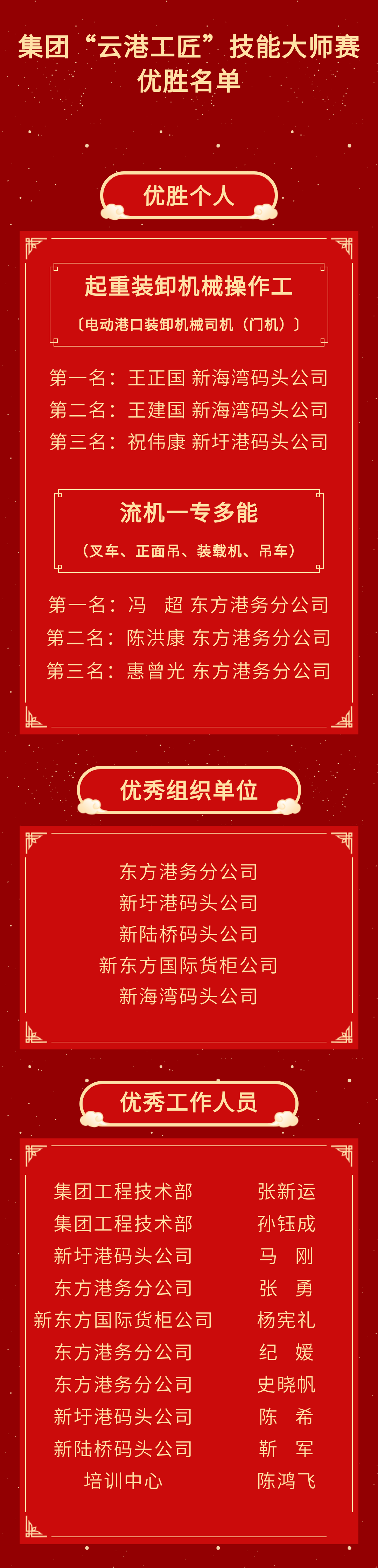 近日,随着最后一项赛事成绩的尘埃落定,连云港港口控股集团首届“云港工匠”技能大师赛圆满落下帷幕。