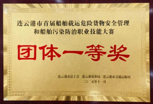 11月13日,由连云港市总工会、连云港海事局、连云港市交通运输局联合主办的连云港市首届船舶载运危险货物安全管理和船舶污染防治职业技能大赛在徐圩港区圆满收官。港口控股集团新海湾公司代表队凭借卓越实力一举夺得散装液体危险货物装卸项目的团体一等奖,选手樊继奎更以出色表现荣获该项目个人一等奖。
