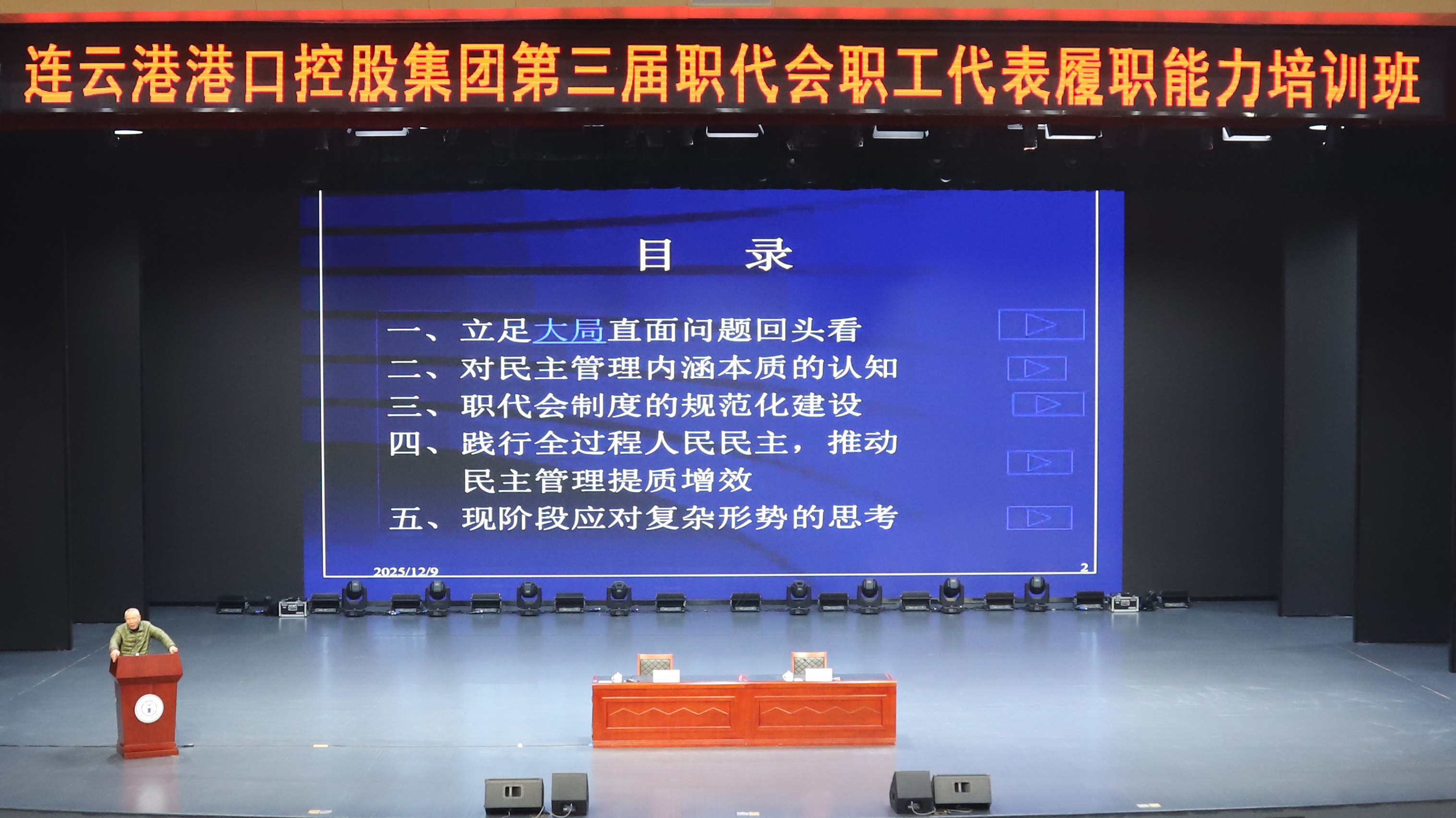 12月9日,连云港港口控股集团工会在职工之家顺利举办集团第三届职工代表大会职工代表履职能力培训班。港口控股集团新当选的358名职工代表和89名民主管理人员参加了此次集中培训。