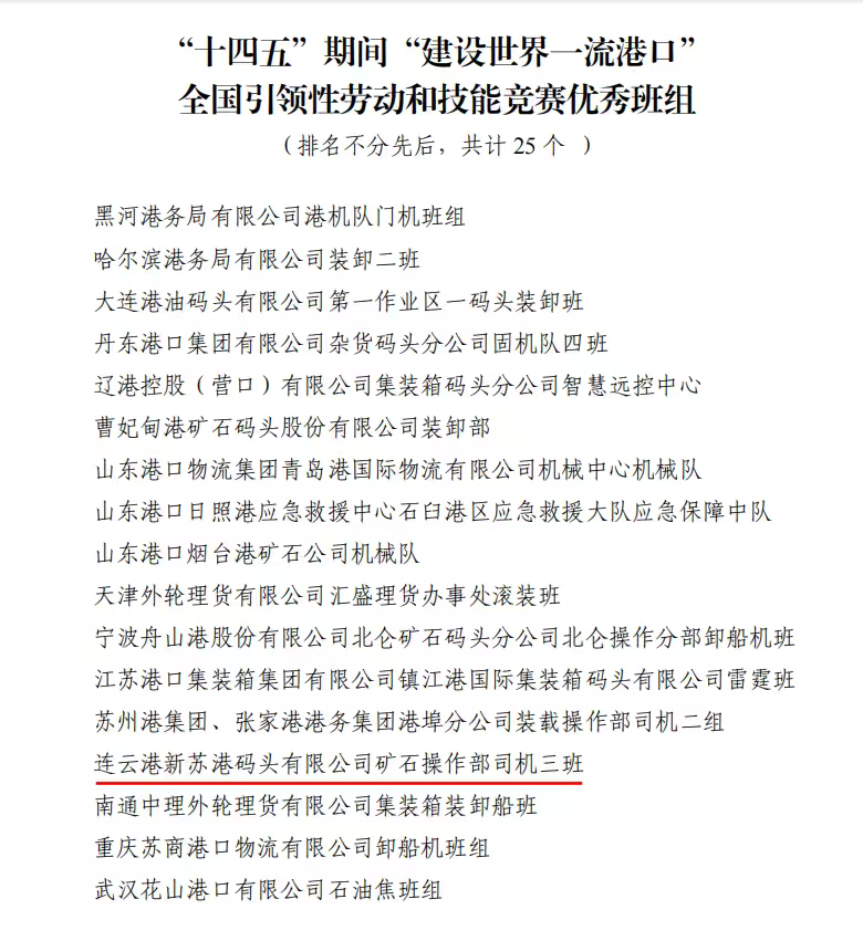 港口班组获“建设世界一流港口”全国引领性劳动和技能竞赛优秀班组称号