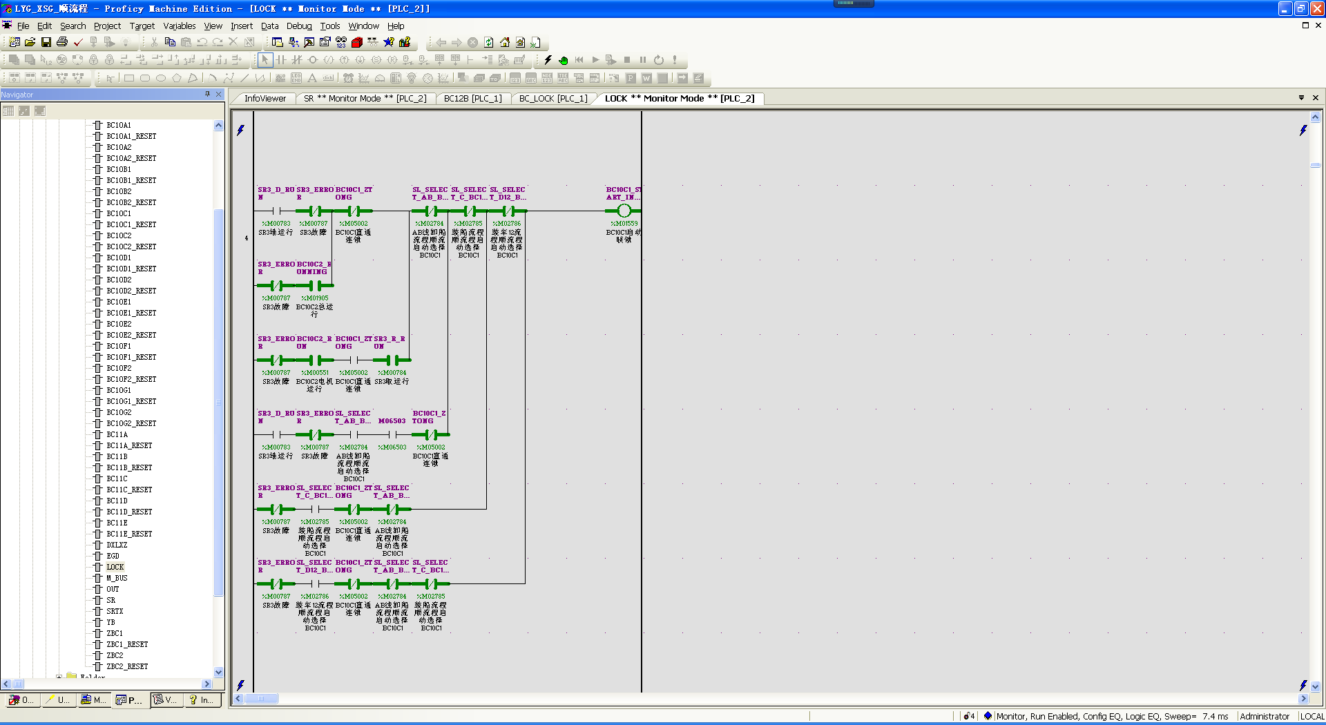 皮带线顺流程启动改造项目主要涉及两个方面:一是对PLC程序进行升级,增加顺流程启动联锁信号及综合保护停机功能,新增PLC点位共计186个;二是对INTOUCH上位机进行开发,增加顺流程启动选择、取消及弹窗提示画面。通过上位机脚本程序的开发,实现了中控操作员顺流程启动一键全选、取消功能,既简化了作业流程,又大幅提升了操作环节的本质安全水平。