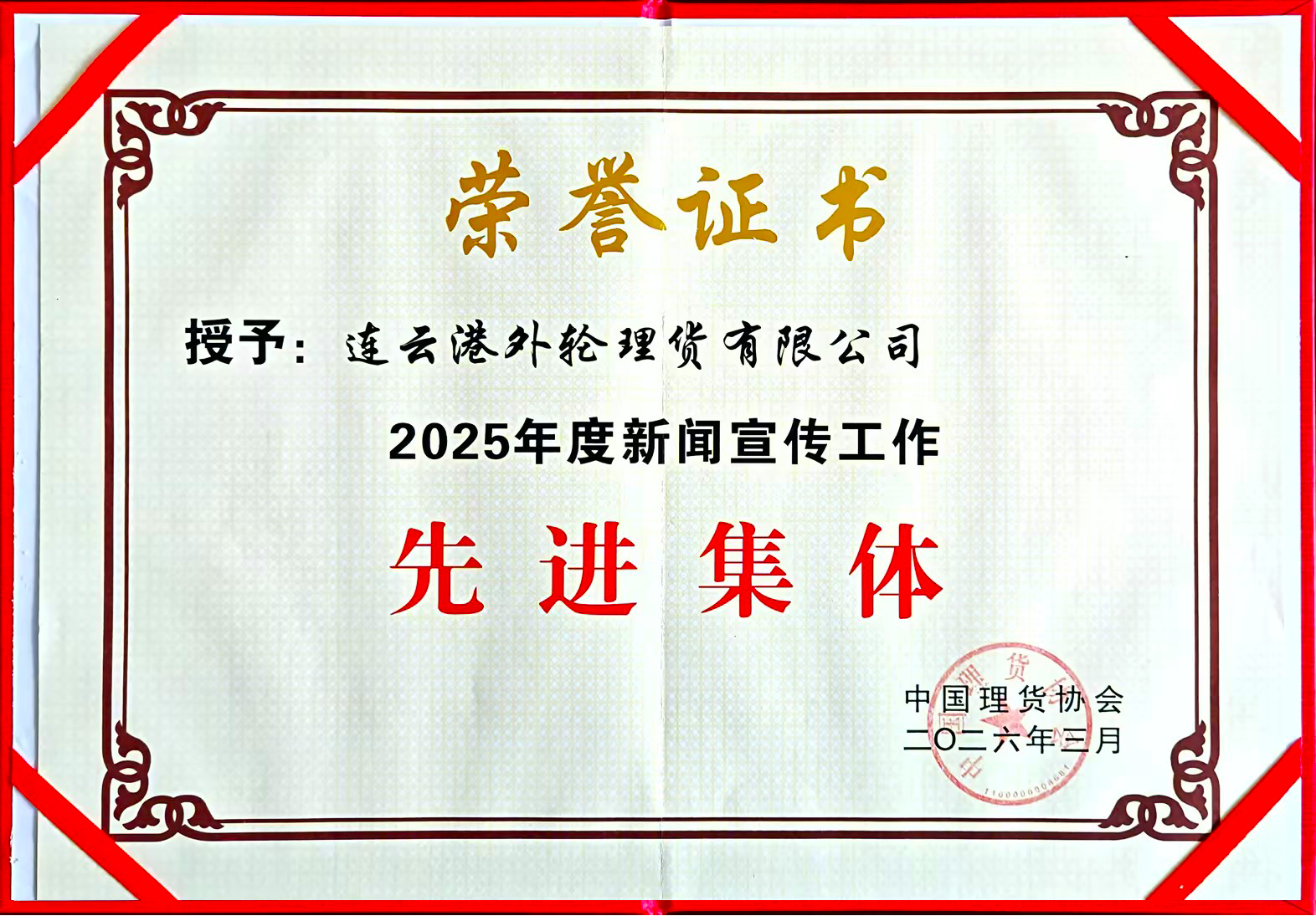 连云港外理荣获2025年度全国理货行业新闻宣传工作先进集体