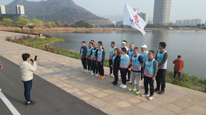 在热烈的掌声中,活动正式拉开帷幕,公司党委书记、工会主席宣布新苏港跑团正式成立,并为跑团团长王立佳授旗。一面鲜艳的团旗在春日的阳光下迎风飘扬,它不仅是跑团的象征,更是一份沉甸甸的责任,将见证跑团成员们每一次的奔跑与成长。