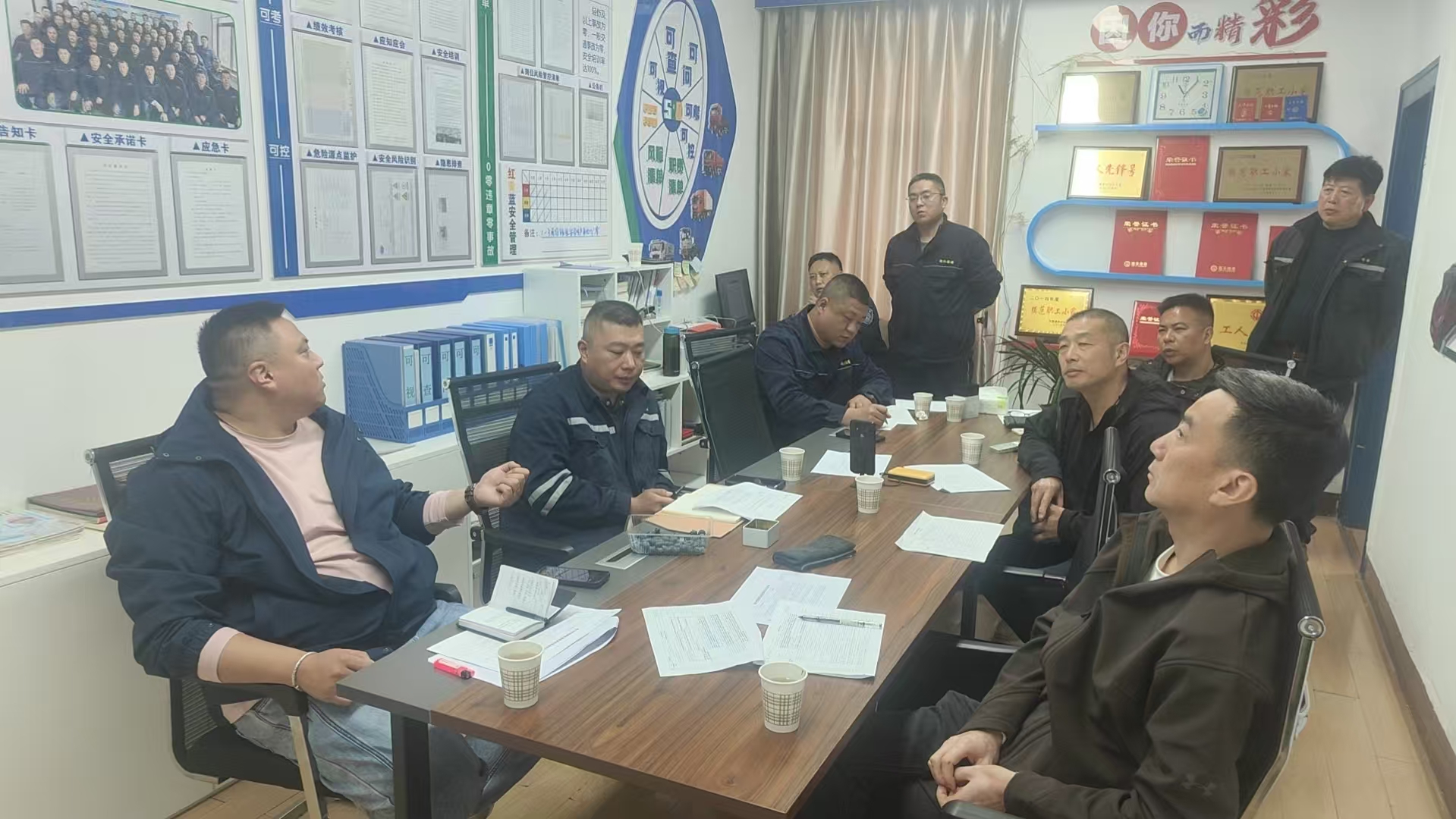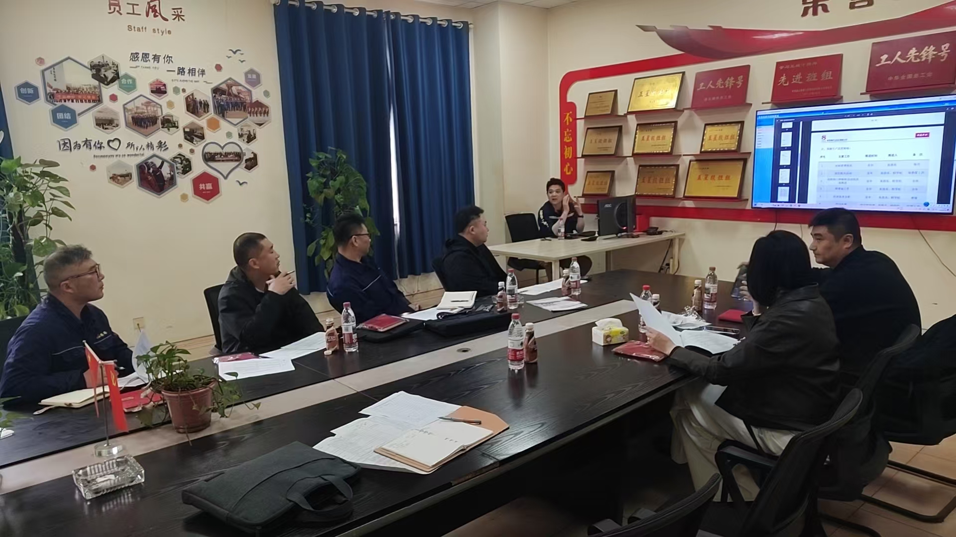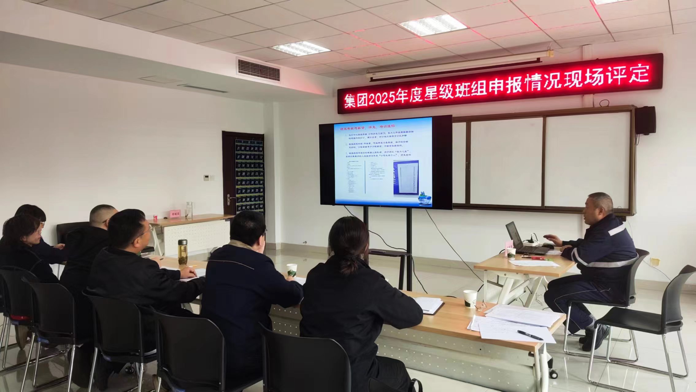 本次评定中,18个存量五星示范班组参加集中评定环节,各班组通过PPT演示汇报年度班组建设整体情况,考评小组围绕星级班组创建活动、制度建设、经济技术创新、安全保护、文化建设、民主管理等核心维度展开现场提问,深度考察班组建设中的突出做法与工作成效。其余35个新申报五星示范及五星级班组则接受现场评定,考评小组深入班组一线,依据集团星级班组创建标准,通过集团工会班组建设管理系统查阅各类管理台账,全面掌握班组在各方面工作的推进情况。评定过程中,考评员与班组长面对面沟通,既肯定班组工作亮点,也指出存在不足,并就下一步创建方向提出指导意见。同时,三个评定点位通过第三方平台进行内部视频连线,实现评定过程同步沟通与监督,进一步提升评定工作的规范性与透明度。