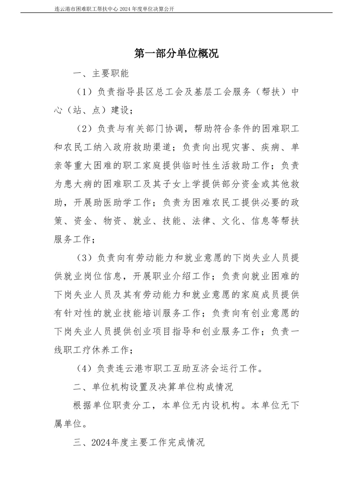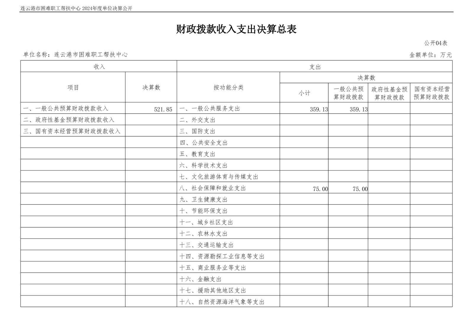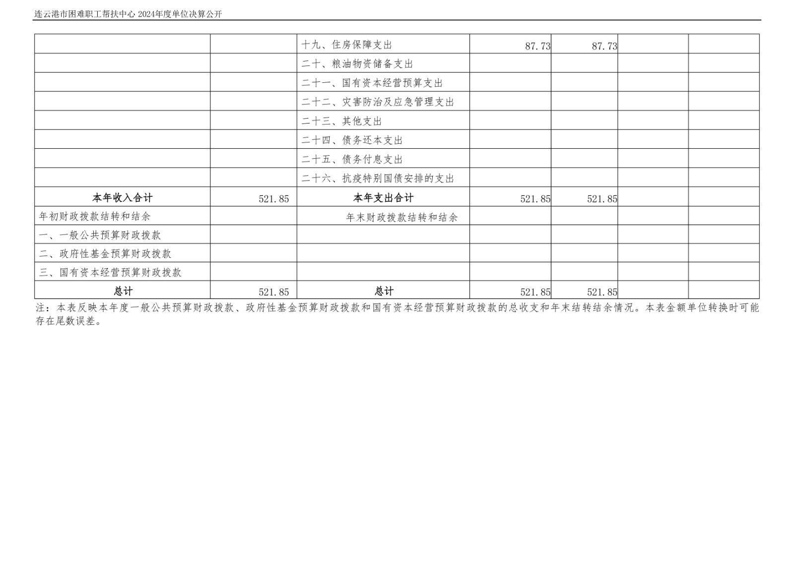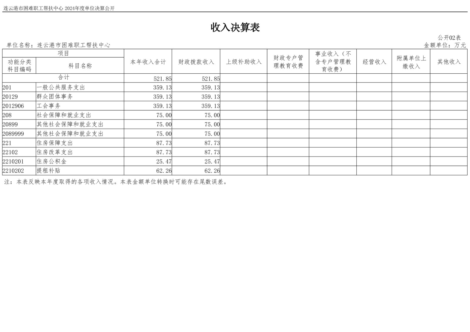 连云港市困难职工帮扶中心2024年度单位决算公开