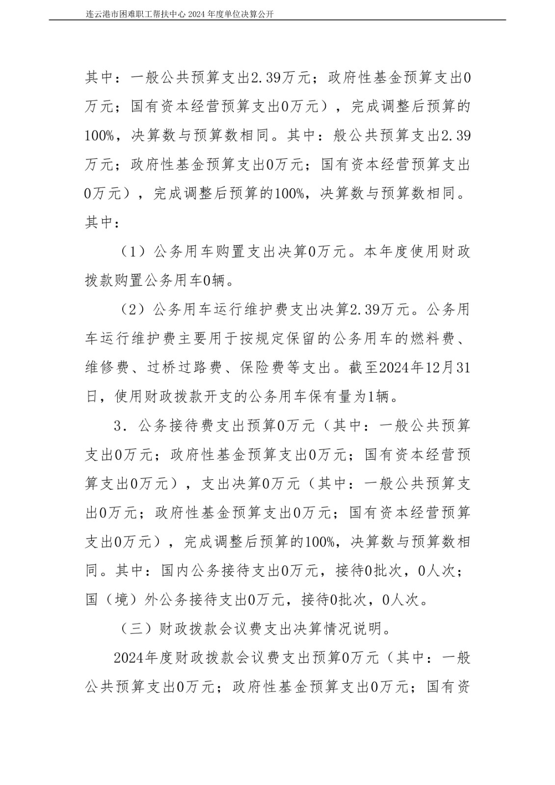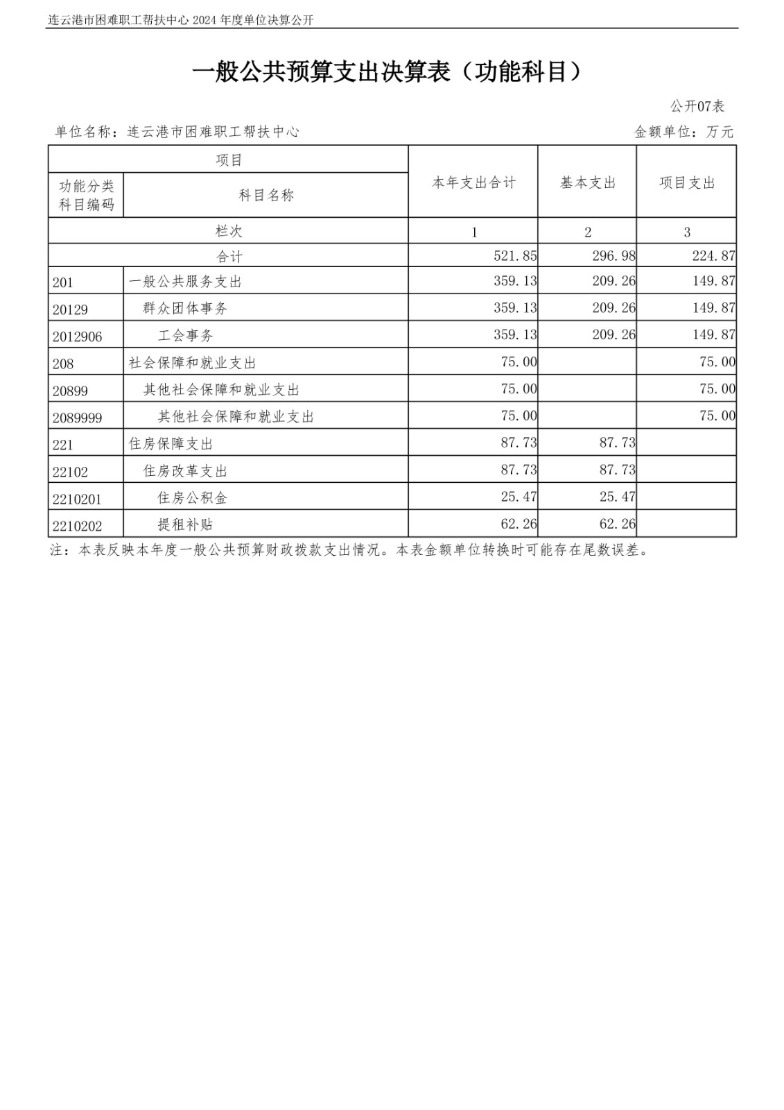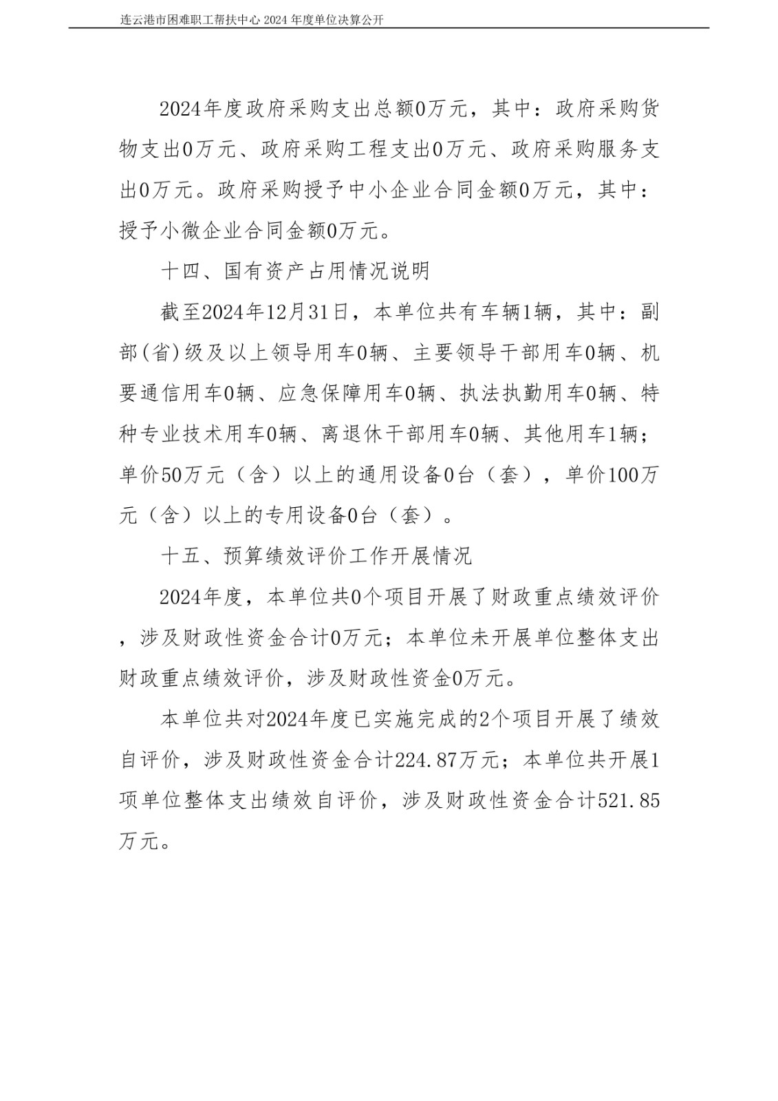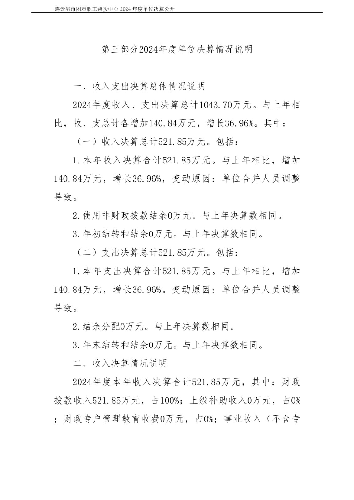 连云港市困难职工帮扶中心2024年度单位决算公开