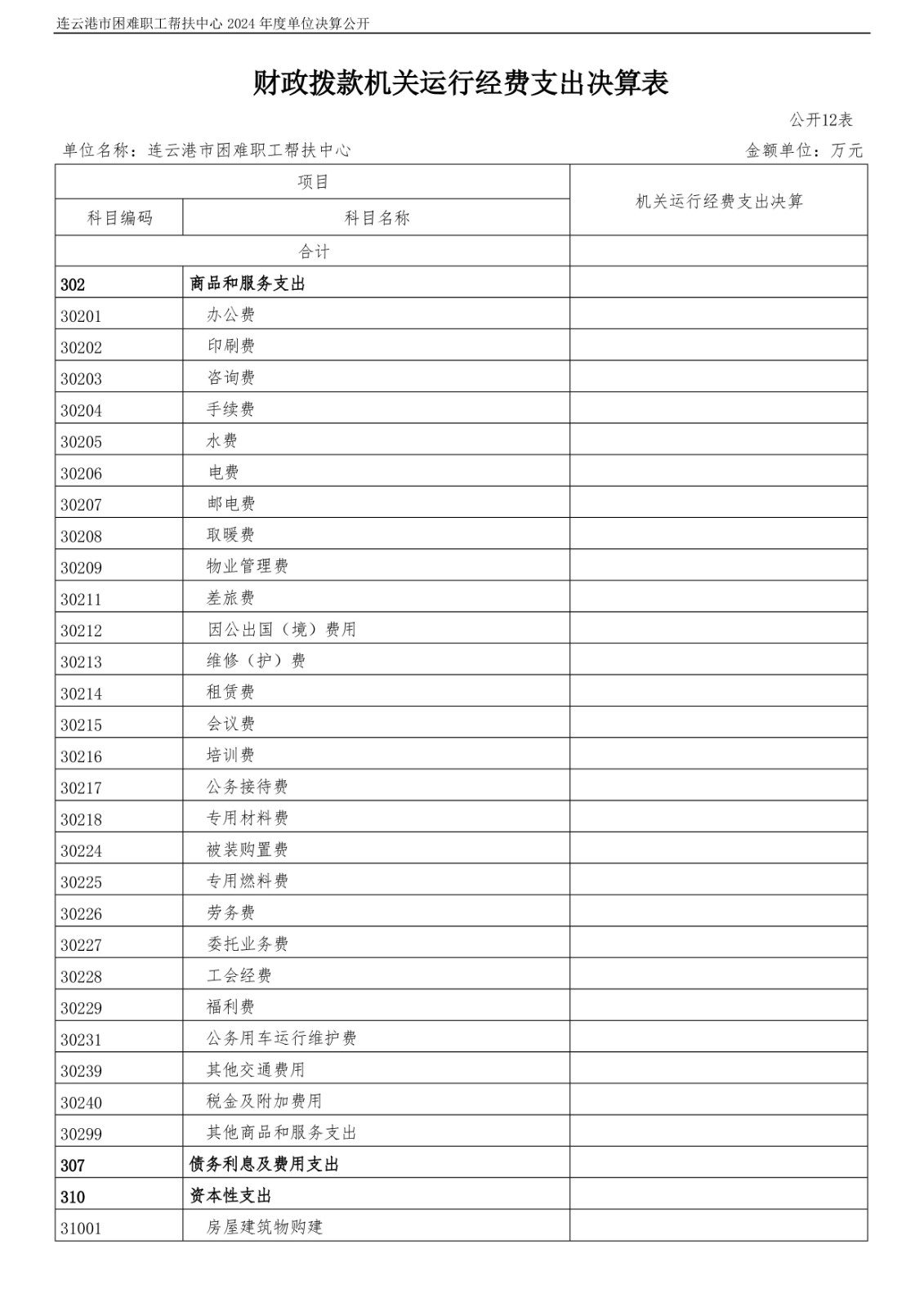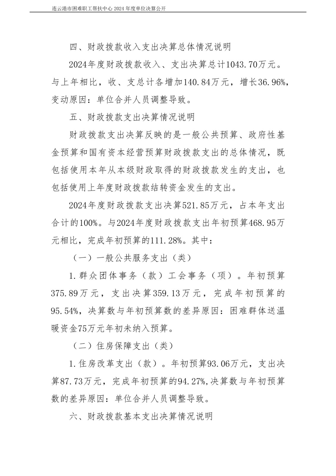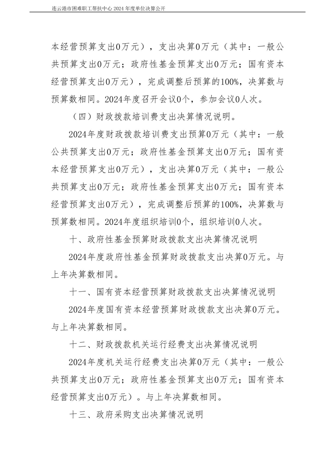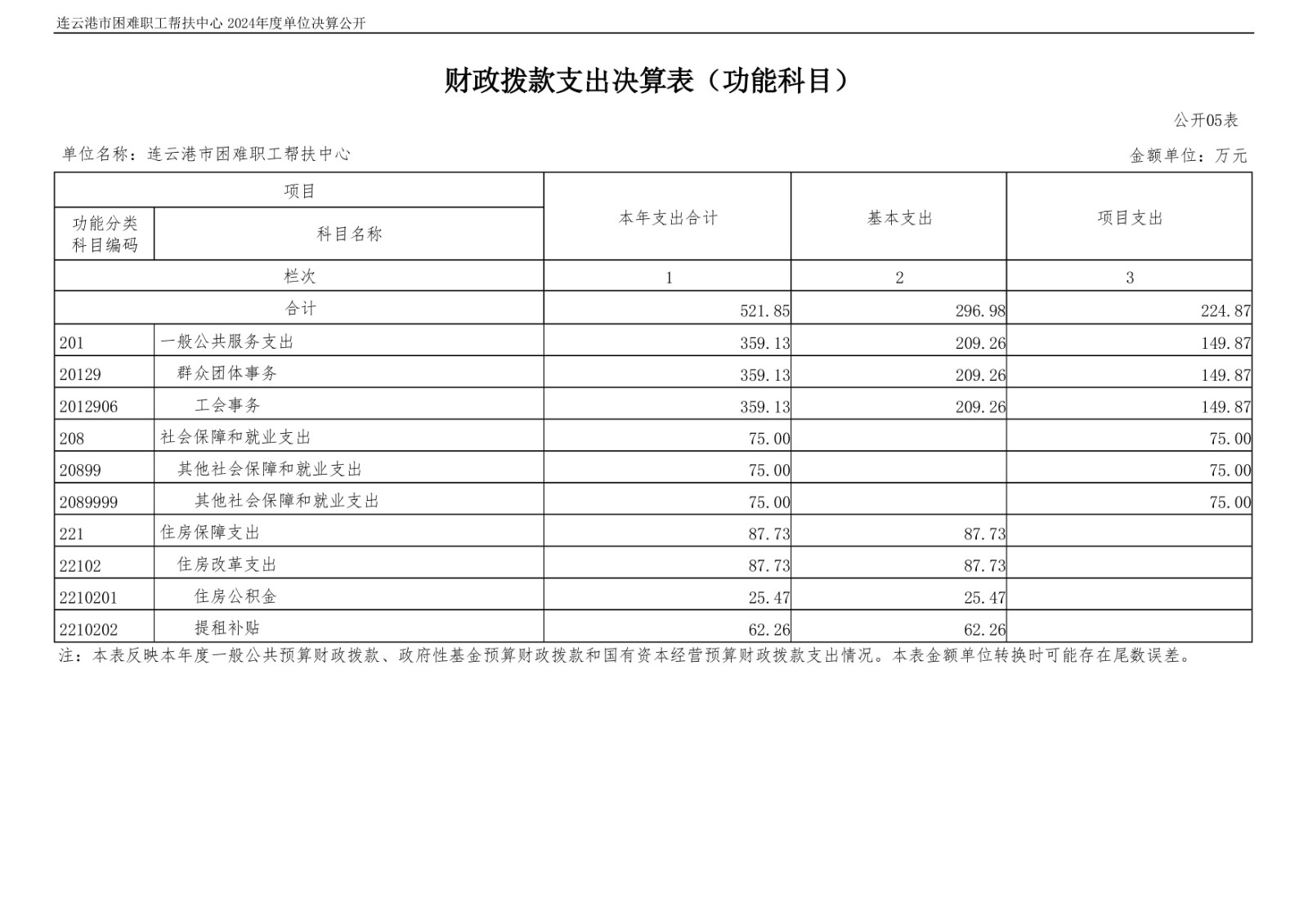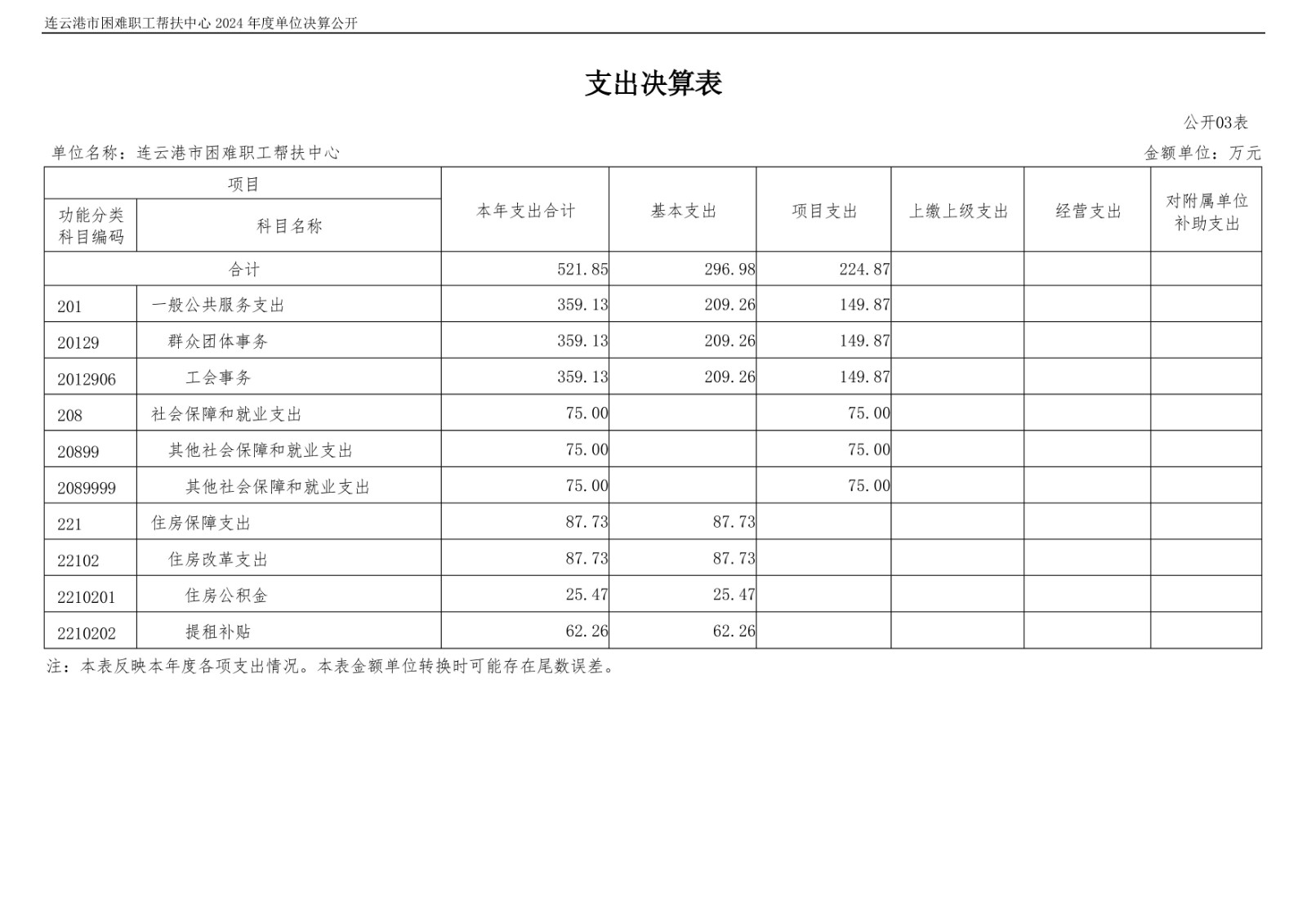 连云港市困难职工帮扶中心2024年度单位决算公开