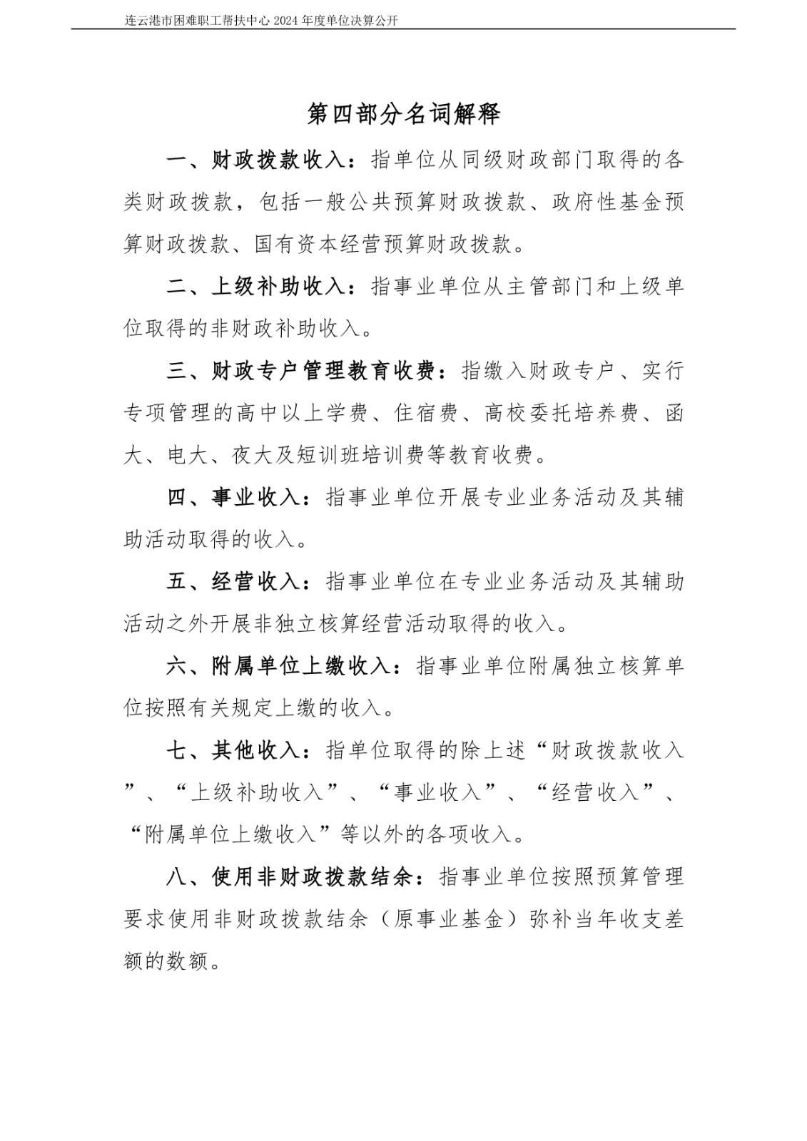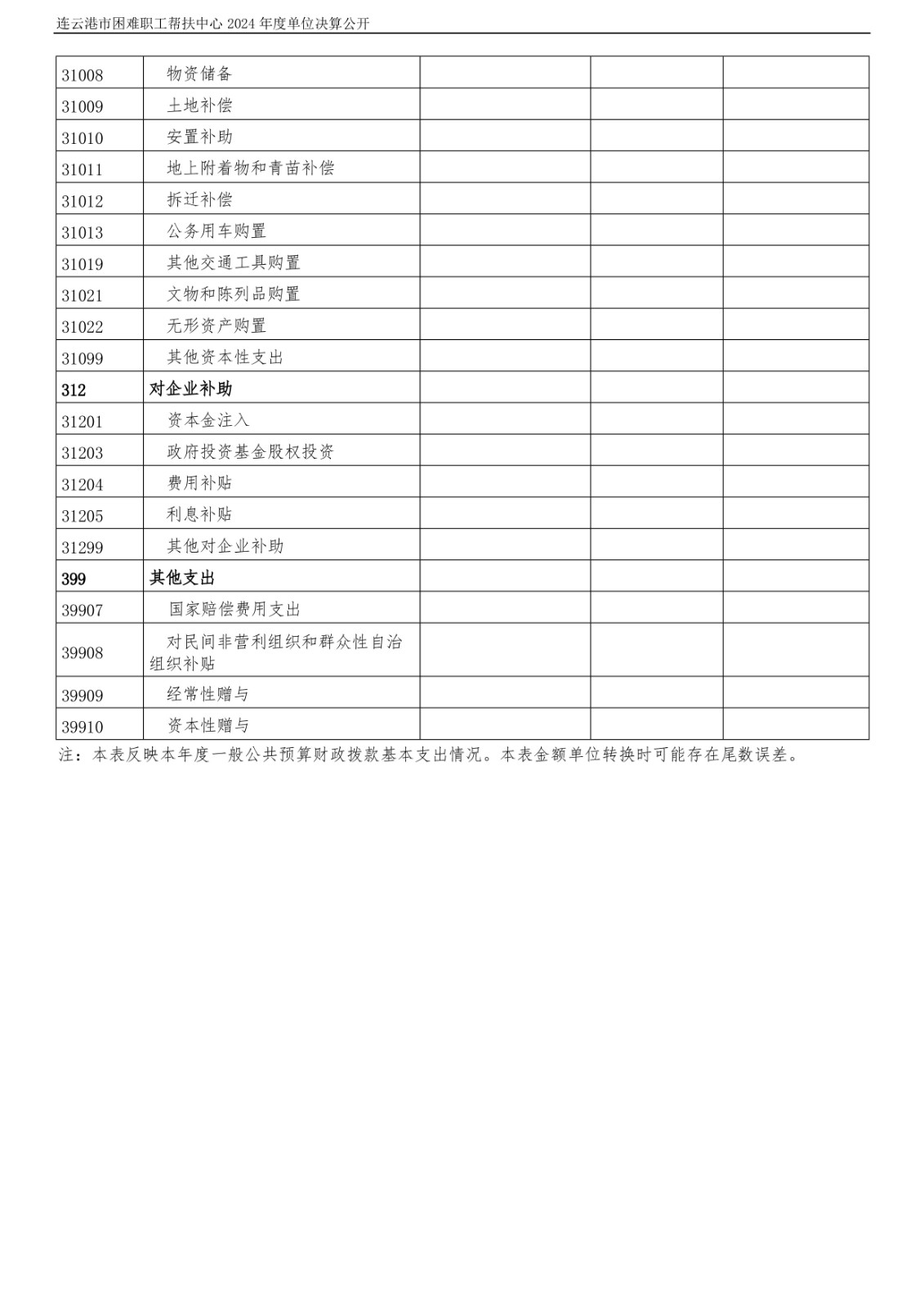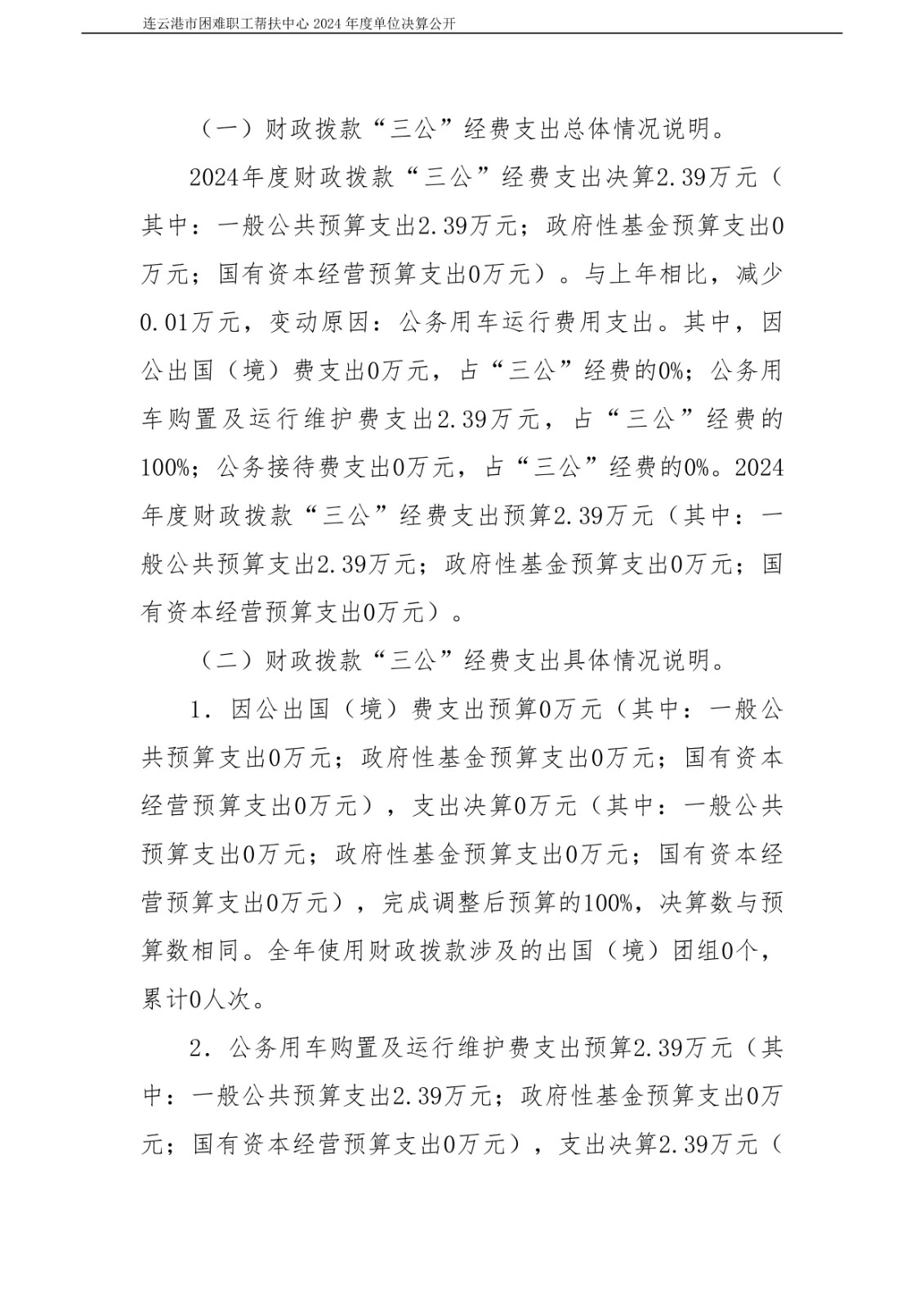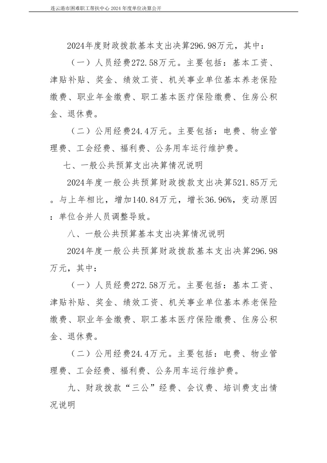 连云港市困难职工帮扶中心2024年度单位决算公开