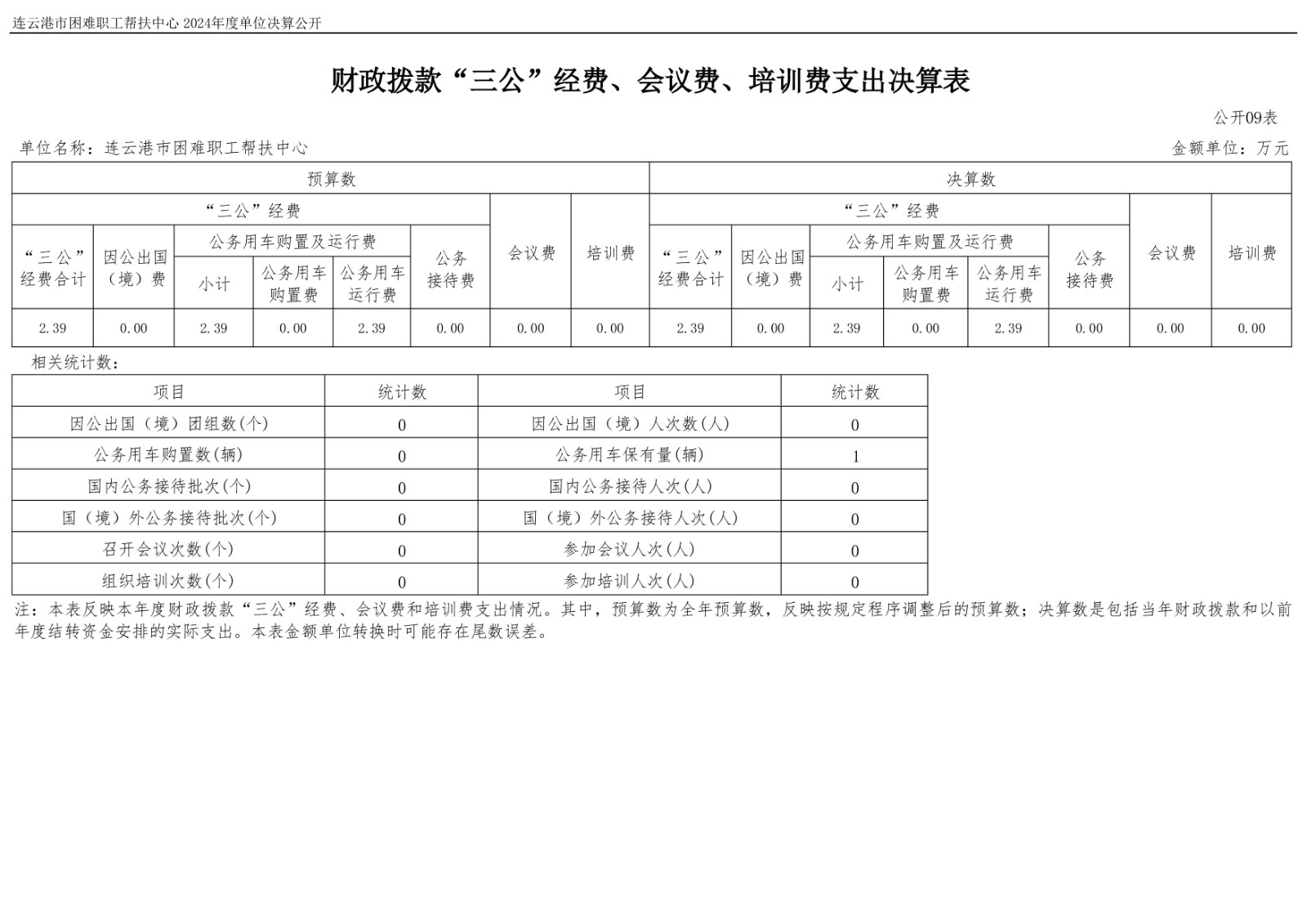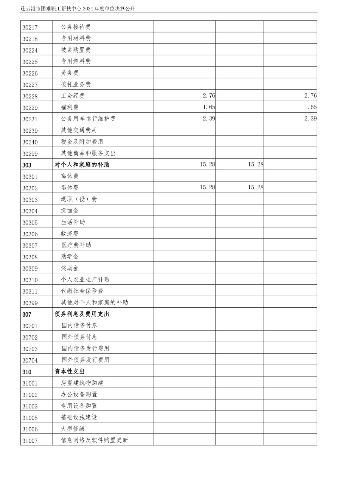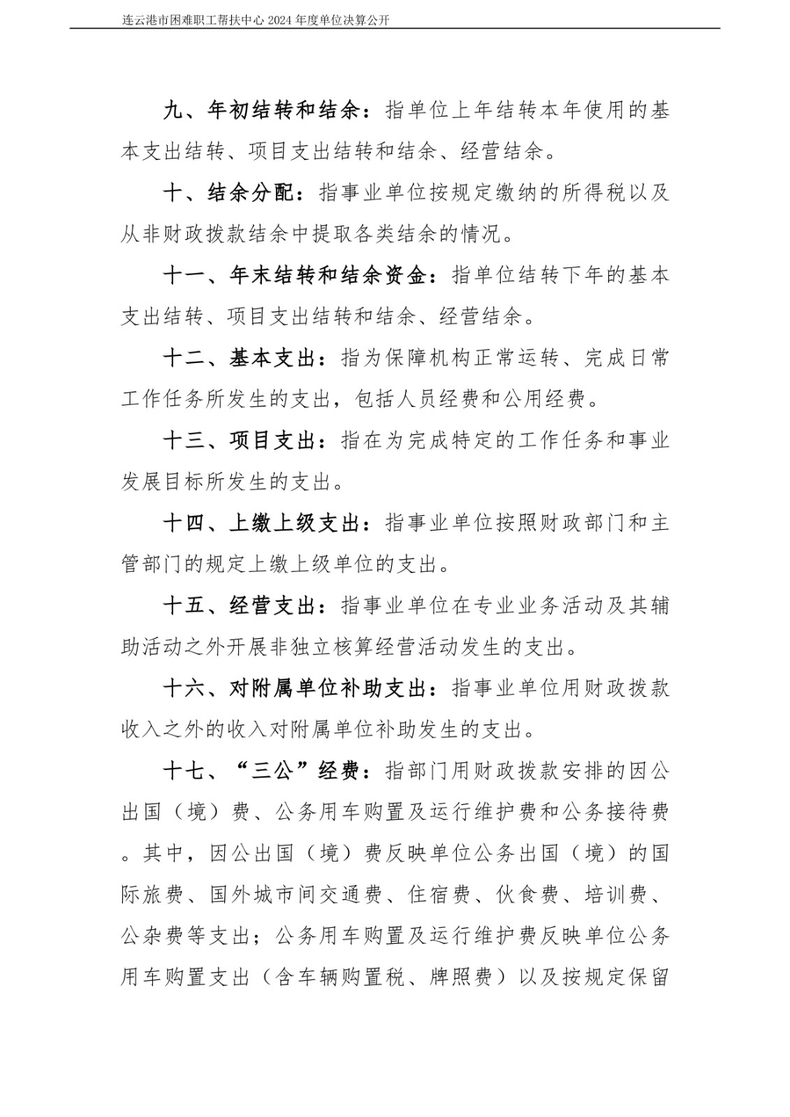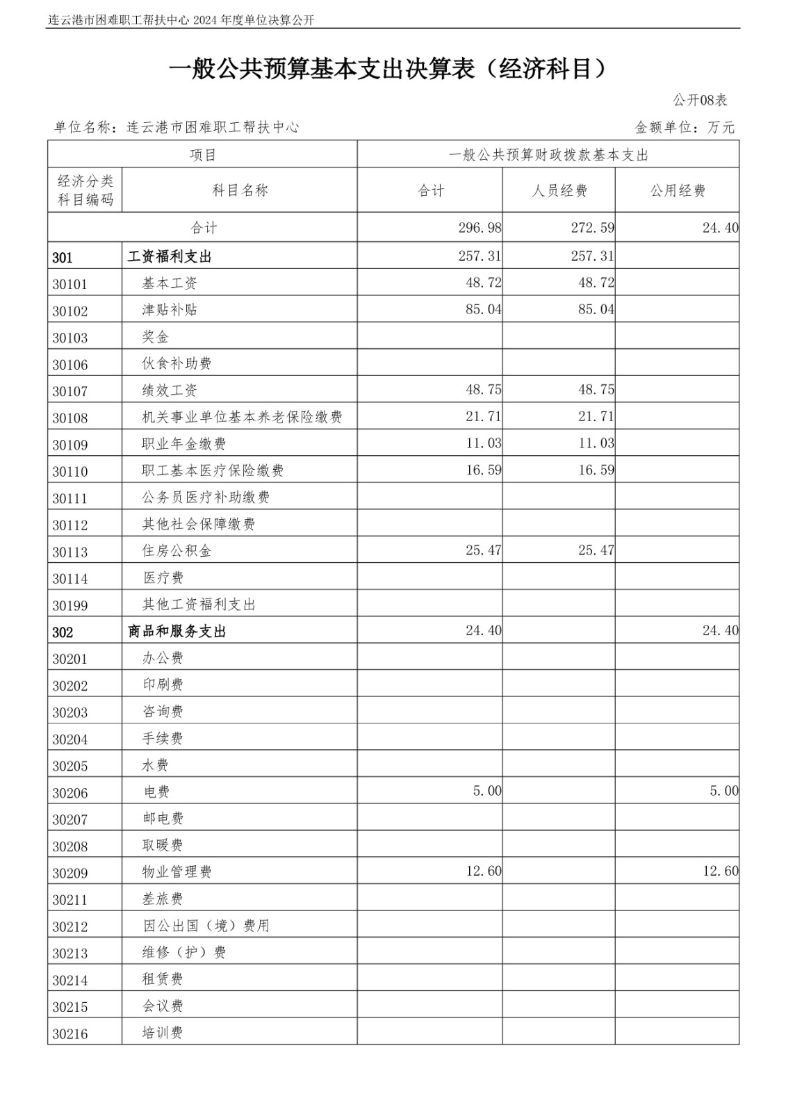 连云港市困难职工帮扶中心2024年度单位决算公开
