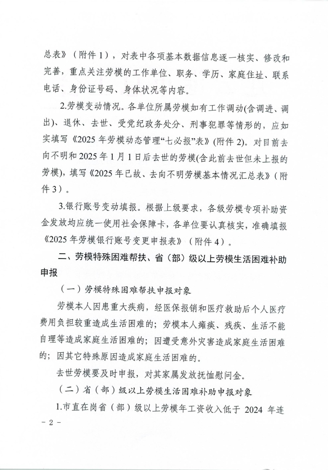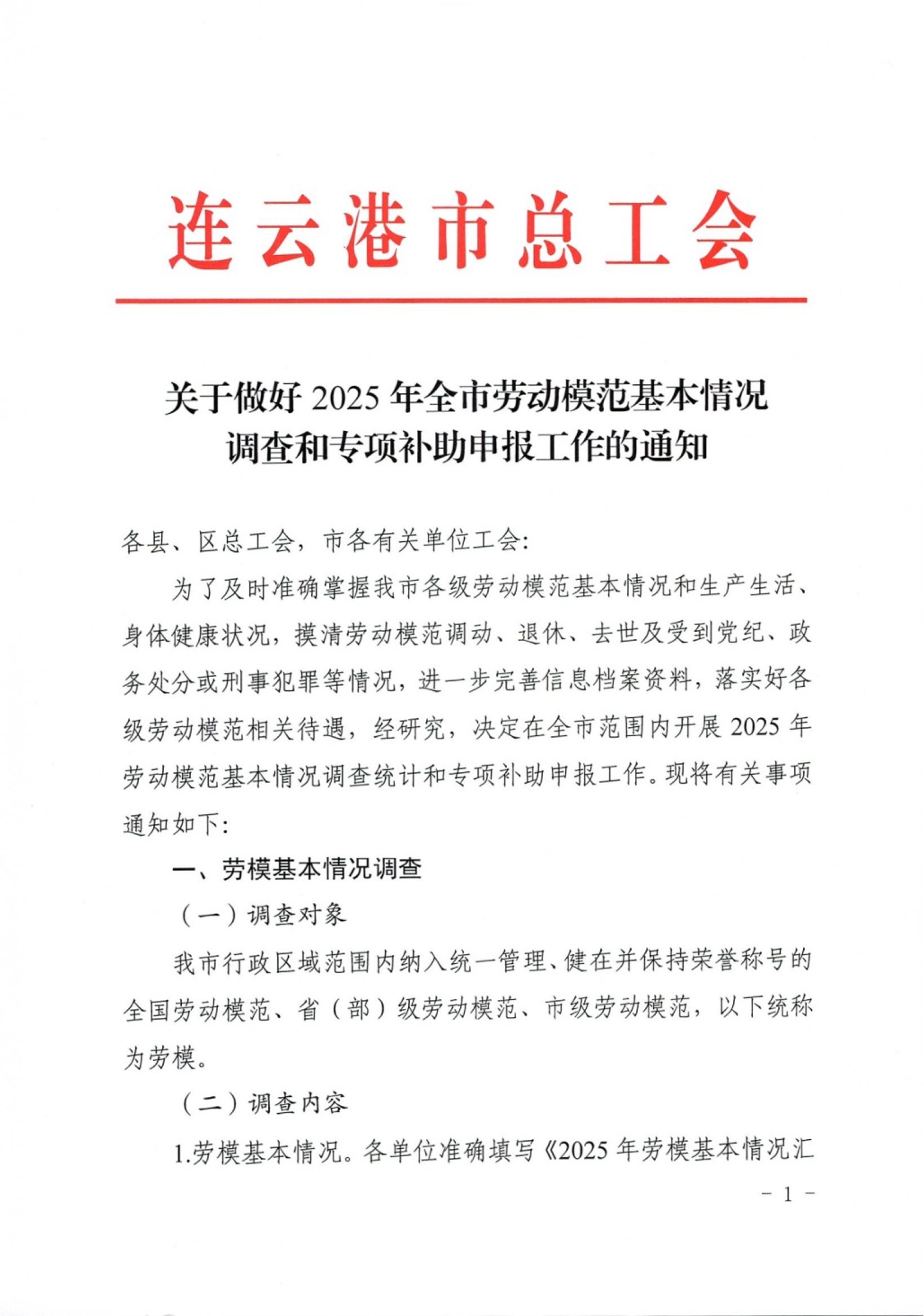 关于做好2025年全市劳动模范基本情况调查和专项补助申报工作的通知