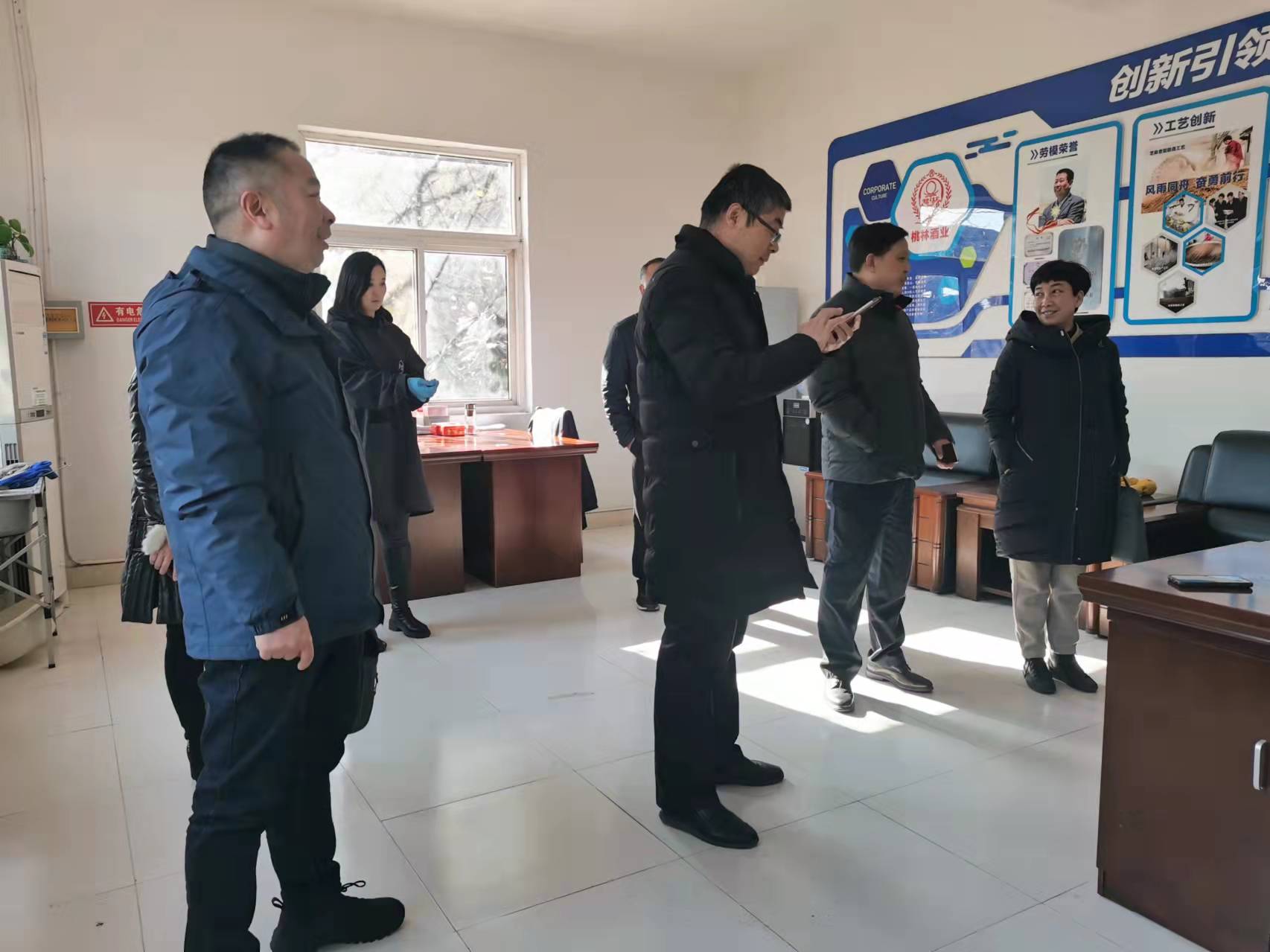 下午,调研组又来到桃林镇走访调研江苏桃林酒业有限公司。该公司始建于1971年,注册资金520万元人民币,目前总投资5000万元。占地面积5万余平方米,建筑面积16000平方米,拥有员工100余人,其中专业技术人员和管理人员20余人。王建宁一行实地走访公司产品展示中心、酒罐区、粉粮车间、酿造车间等处,仔细询问了企业发展情况;在马广群劳模工作室,王建宁详细了解企业在党建思想引领职工队伍、职工技能提升、关心关爱职工等产业工人改革方面的情况,希望公司进一步提升产业工人素质,发挥企业龙头作用,有效带动桃林优质农产品发展,为增加群众收入作出新的更大贡献。
