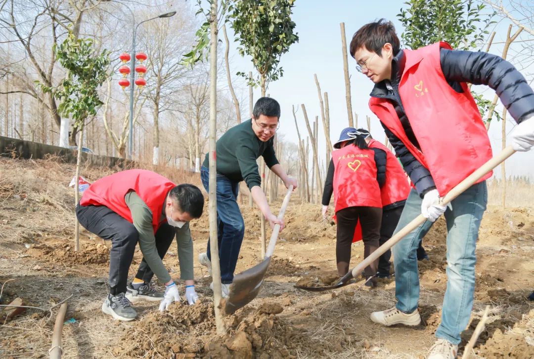暖风吹佛、阳光和煦,在植树现场,大家齐心协力、相互配合,挥锹铲土、培土围堰、提桶浇水、踩实固苗,各个环节有条不紊,一株株“同心树”迎风摇曳,西双湖边的“志愿红”成了一道靓丽的风景线,更展现了水晶人积极向上、充满活力的队伍形象。不一会儿功夫,100株女贞树苗傲然挺立、成行成林。在植树的同时,东海水晶集团还积极与景区部门联系对接,落实好后期管护工作,确保栽一片、活一片、绿一片。