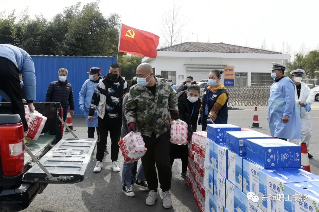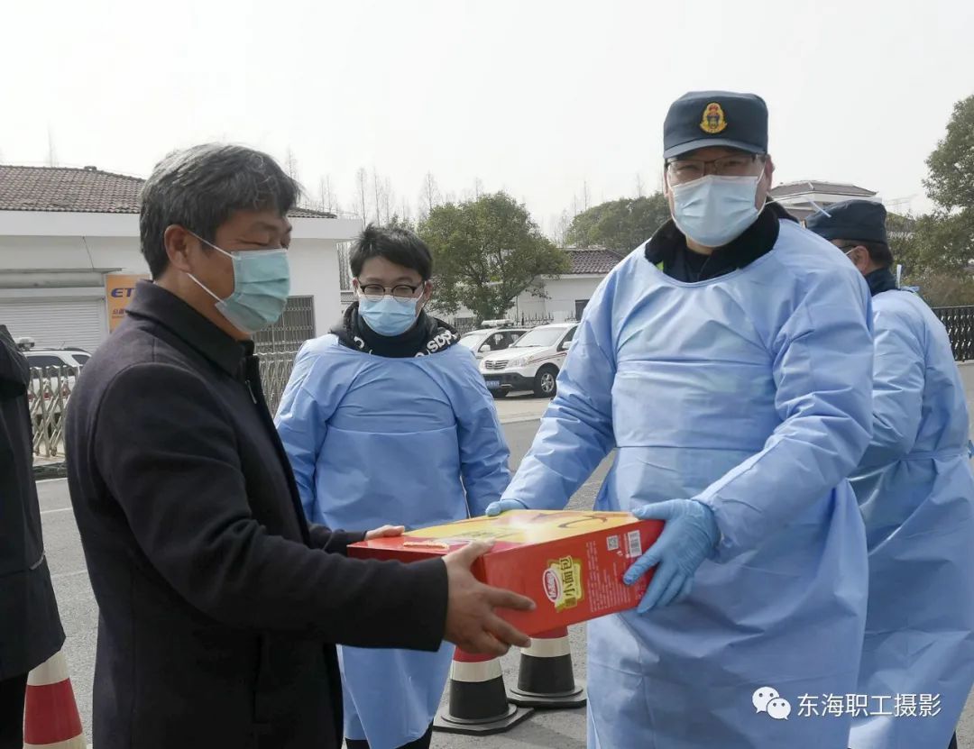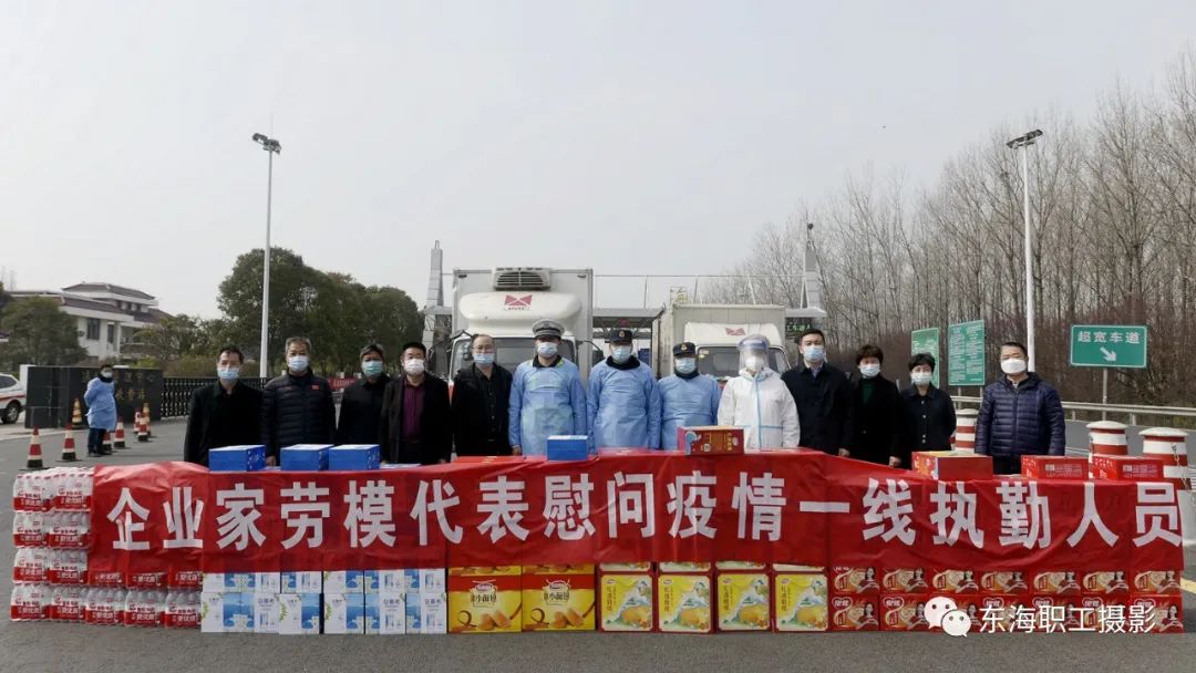 3月16日,东海县总工会组织马广群、刘光达、丁加英等企业家劳模代表,来到东海县高速卡口,慰问了交通管控组防控人员,捐赠价值6万余元的防控抗疫物资。县总工会3月8日发出《致全县各级工会组织和广大职工朋友的倡议书》后,全县上下各级工会迅速行动起来,广大工会干部、职工投入抗疫工作,发挥工会力量,立足本职工作,发挥自身优势,在抗“疫”一线发挥了重要作用。