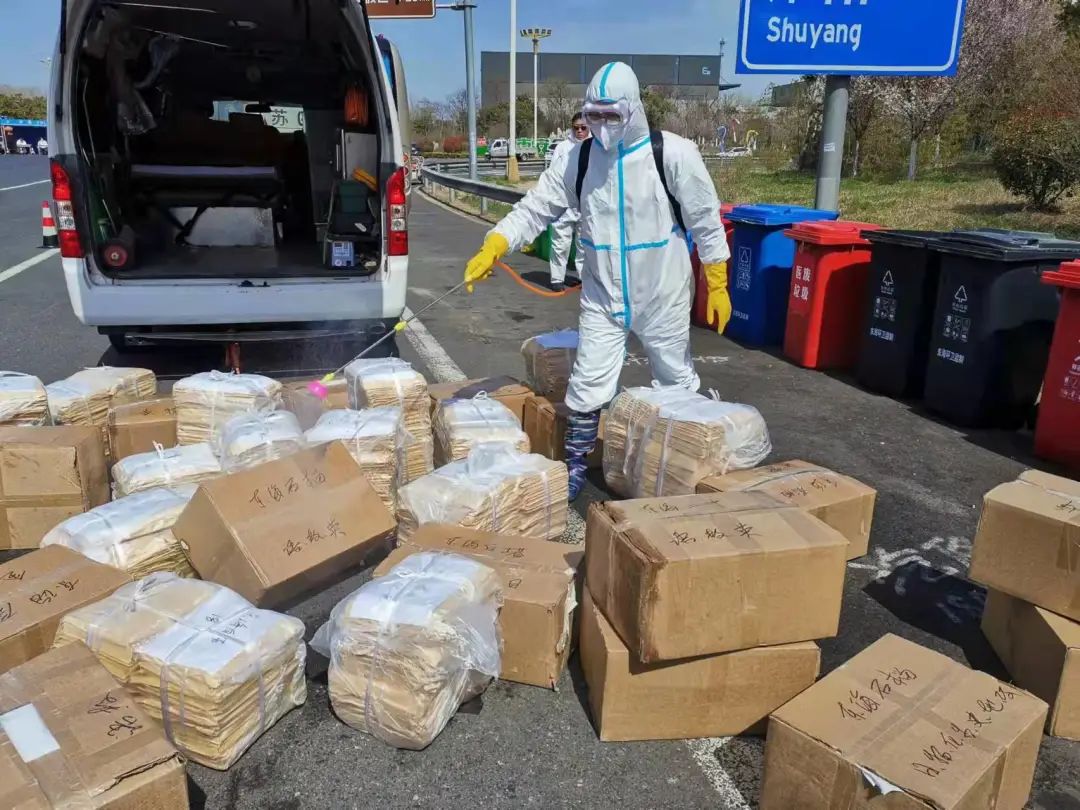 在现场可以看到,尽管艳阳高照,卡口信息查验处的地面上消毒液的水渍几乎未完全干过。“随着连云港市范围内全面解封,卡口车流量日趋增大,环境消杀工作需要循环不间断进行。”正在现场值守的突击队感染防控组组长尹川告诉我们,房山高速路口是进出东海的交通“要塞”,疫情防控工作容不得丝毫马虎。滚滚车流中,一个个身着白色防护服的和蓝色隔离衣的身影悄然伫立,以自己的奉献和担当,为守护东海百姓的健康筑起了一道牢固的安全线。