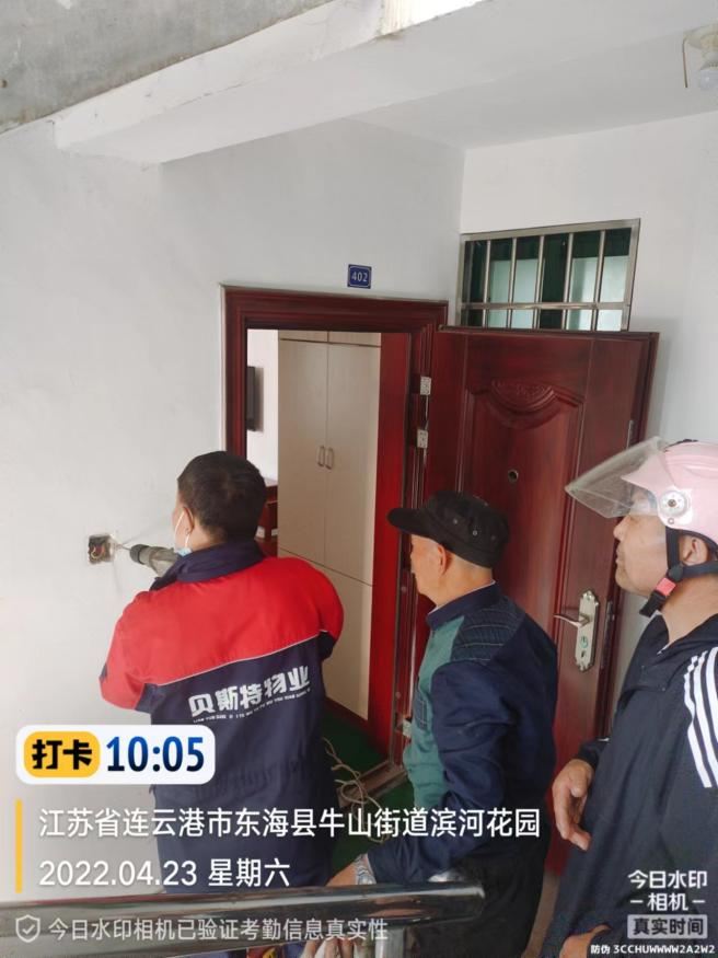 5月6日下午,家住东海县牛山街道滨河花园小区7号楼1单元501室的业主陈兴羽手捧一面写着“情系业主办实事,体贴入微似亲人”的鲜红的锦旗来到物业办公室,连声说“我来感谢胡师傅,感谢物业的”。