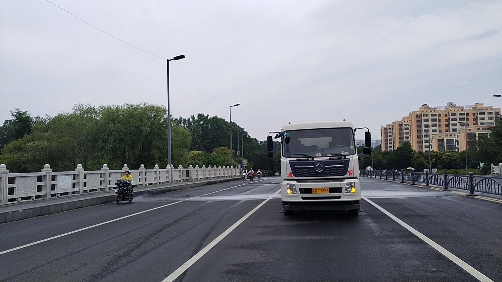 连日来,洒水车、清扫车、雾炮车实行白班、早班、中班、晚班工作制,县城区主次干道冲洒基本达到全覆盖。4台雾炮车每天喷雾降尘70余车次、6台洒水车每天洒水60车次、7台洗扫车每天洒水60车次、1台护栏清扫车每天冲洗护栏4车次,日洒水用水量1800吨,每天作业里程约1100公里。既给城区道路防尘降温,又提升了城市环境,同时给行驶在道路上的广大居民,带来一缕缕凉意。